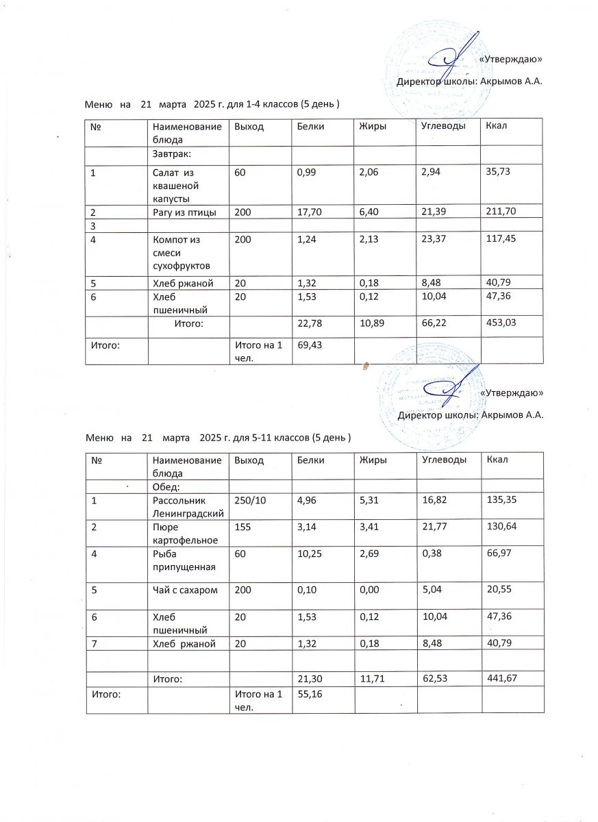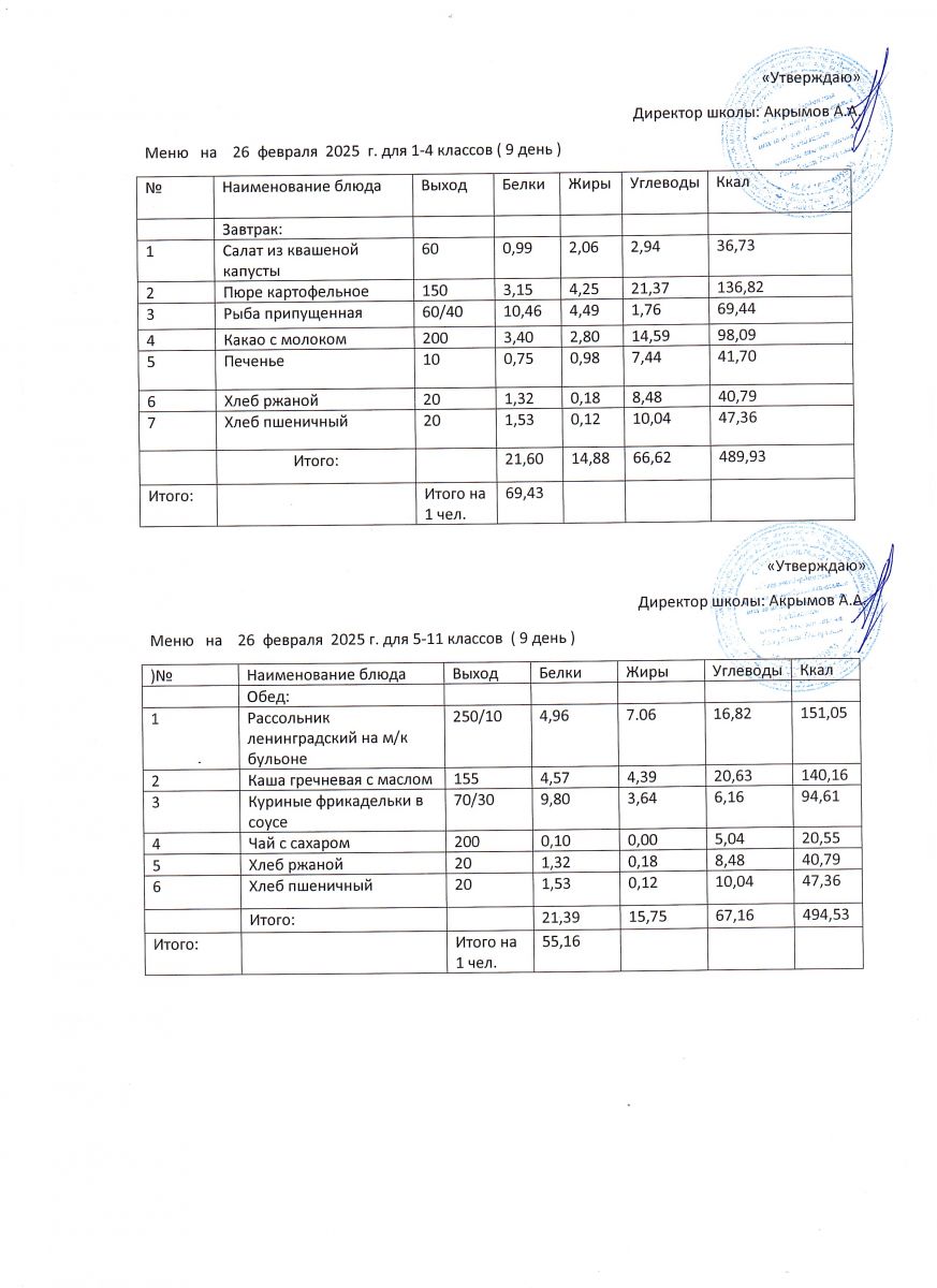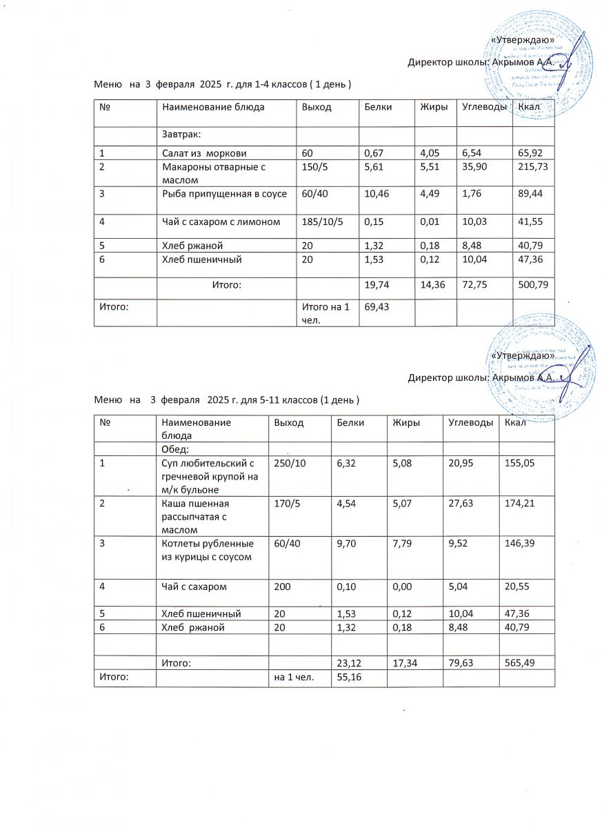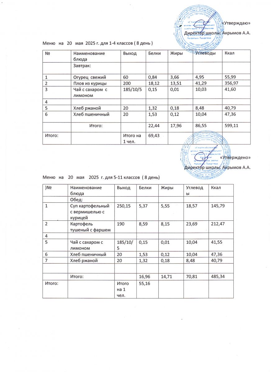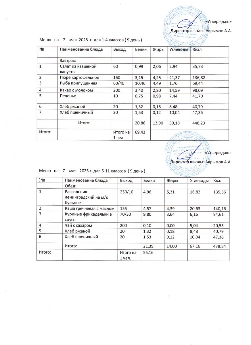 Ежедневное меню учащихся 1-4, 5-11 классов на 2024-2025 уч.год