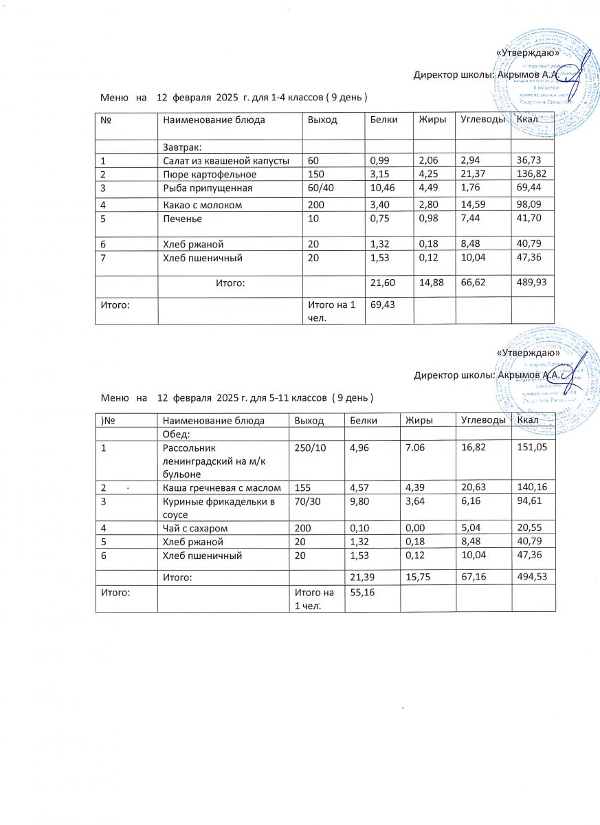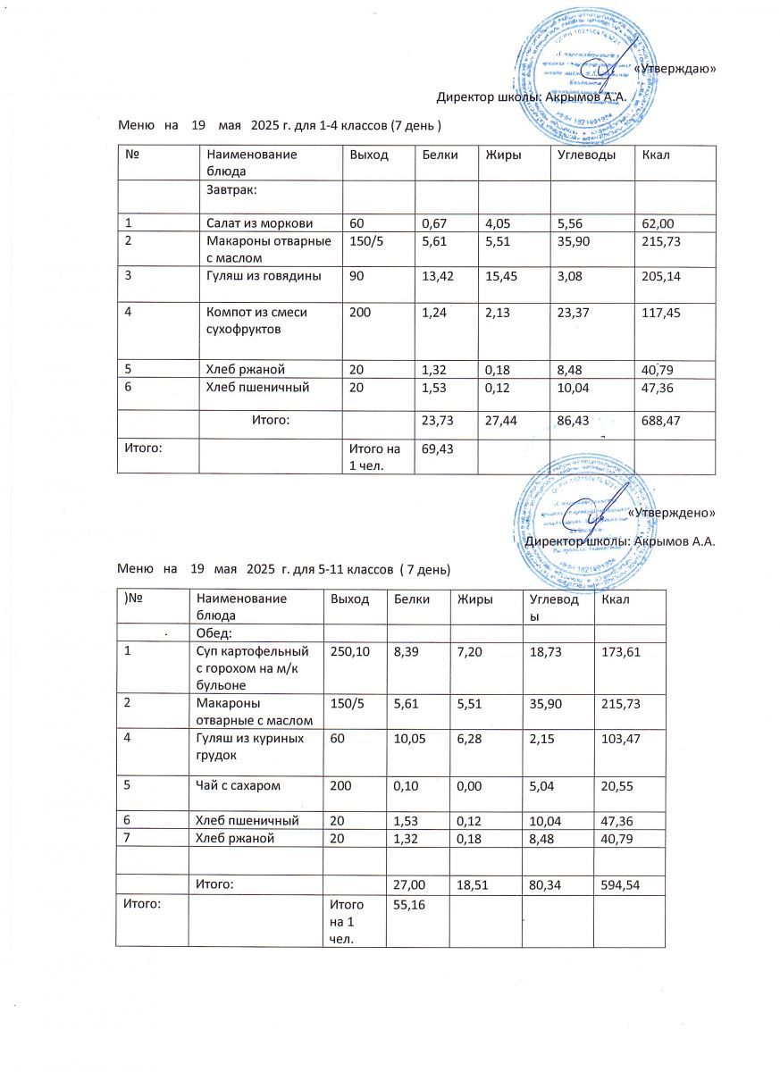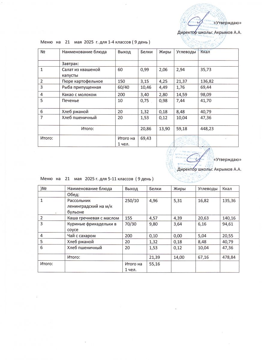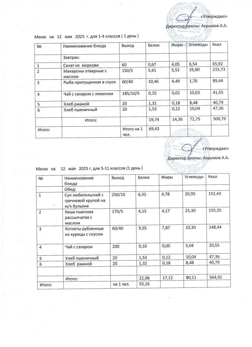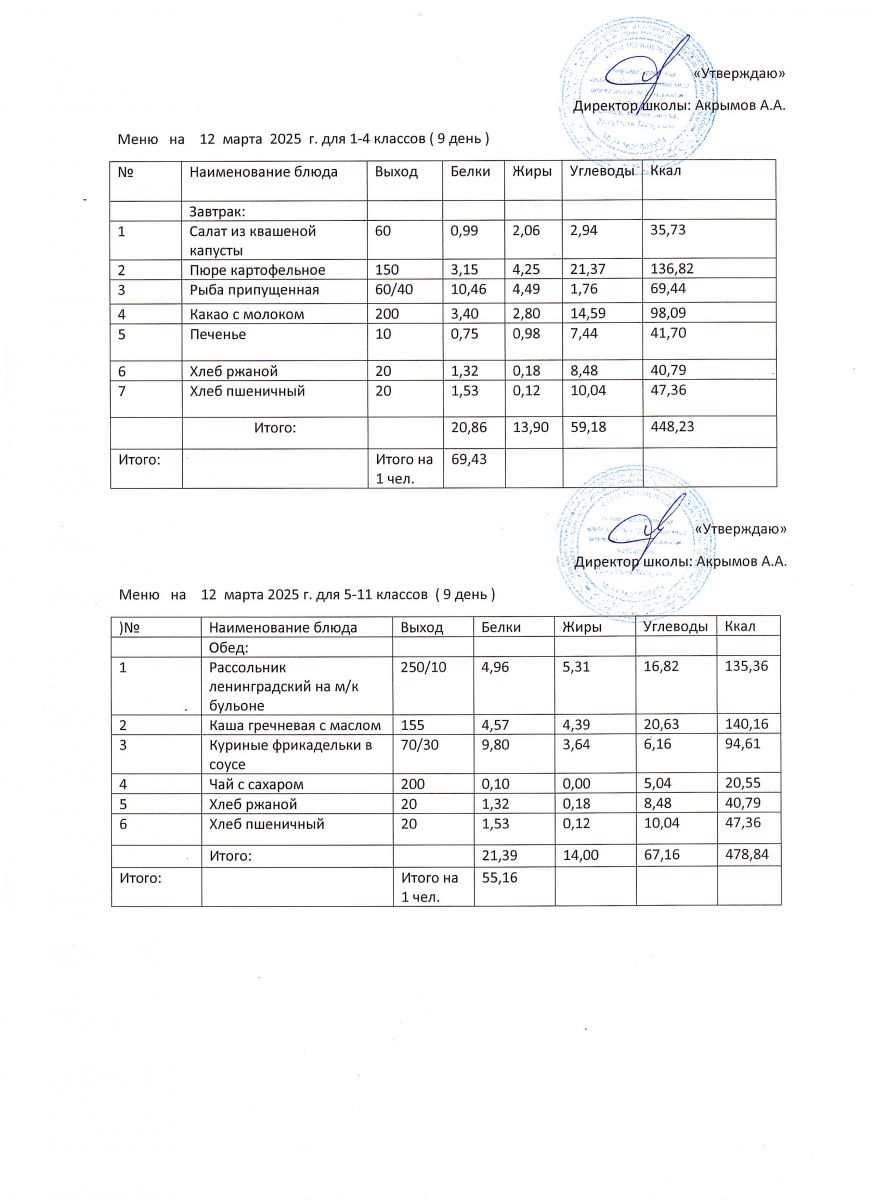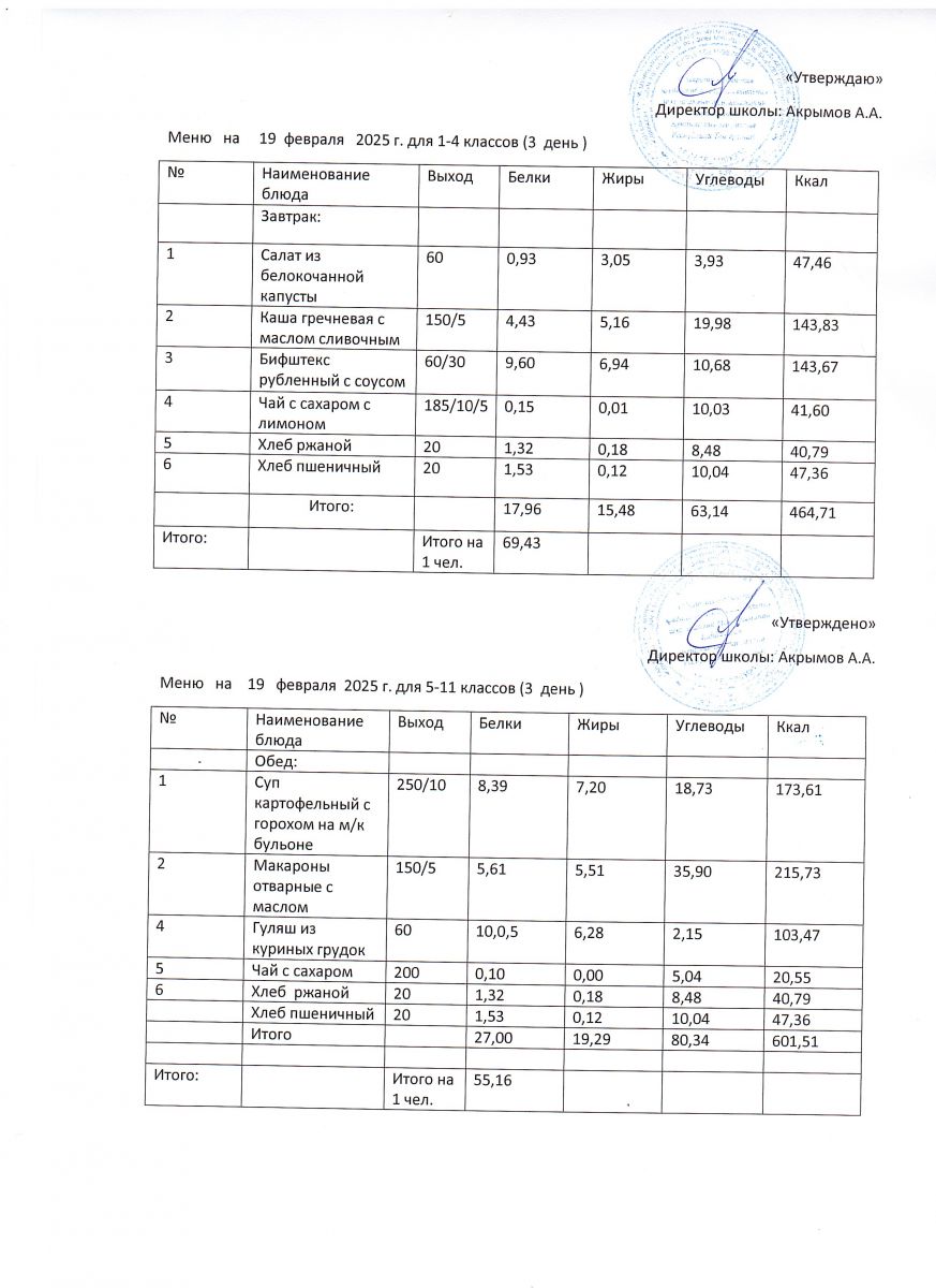 Ежедневное меню учащихся 1-4, 5-11 классов на 2024-2025 уч.год