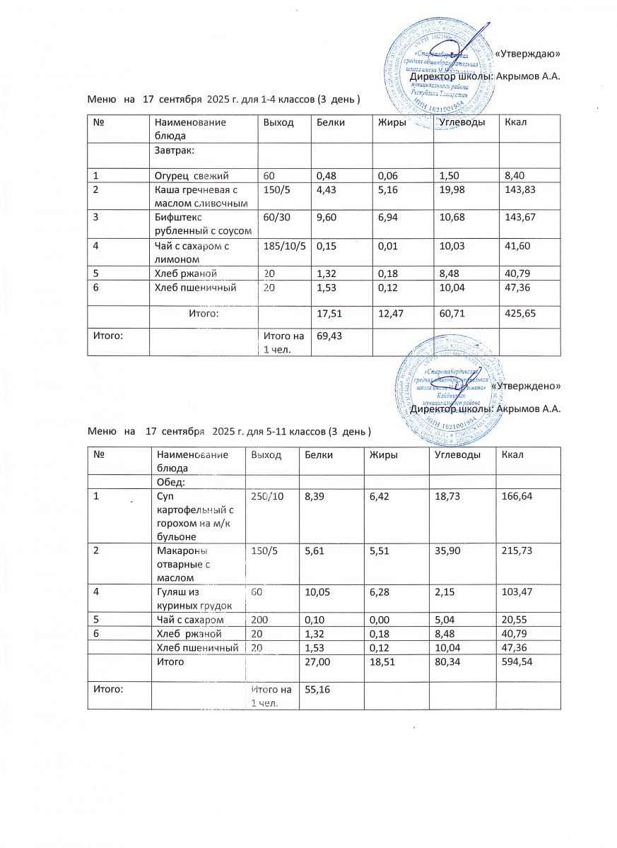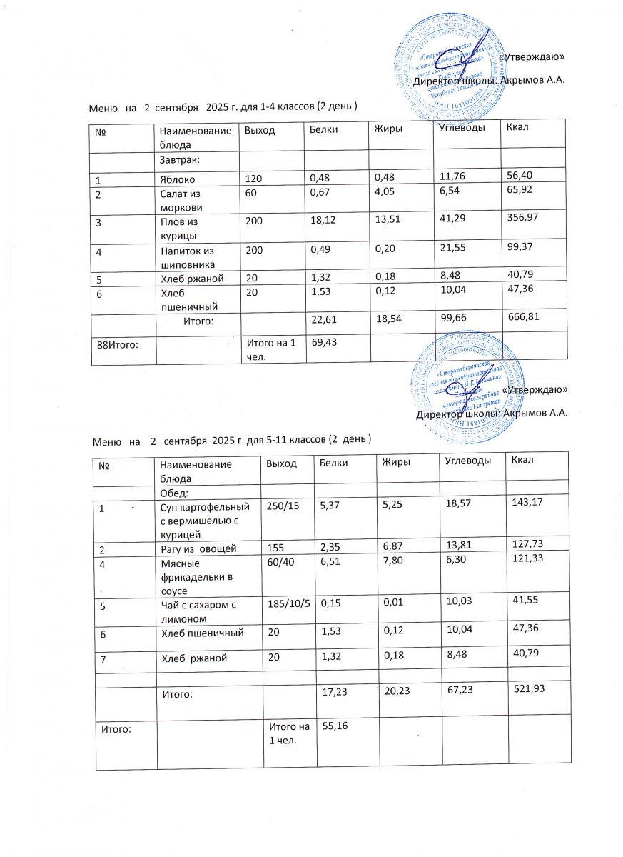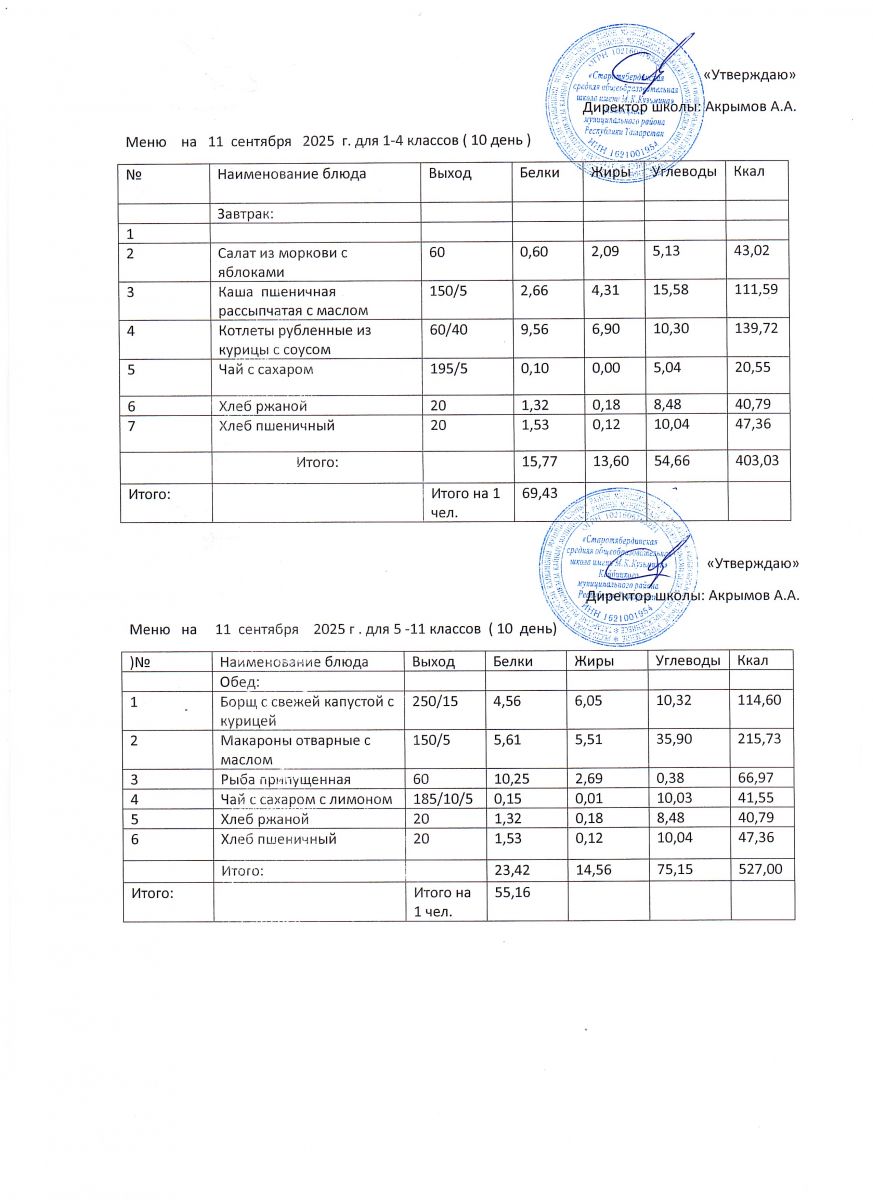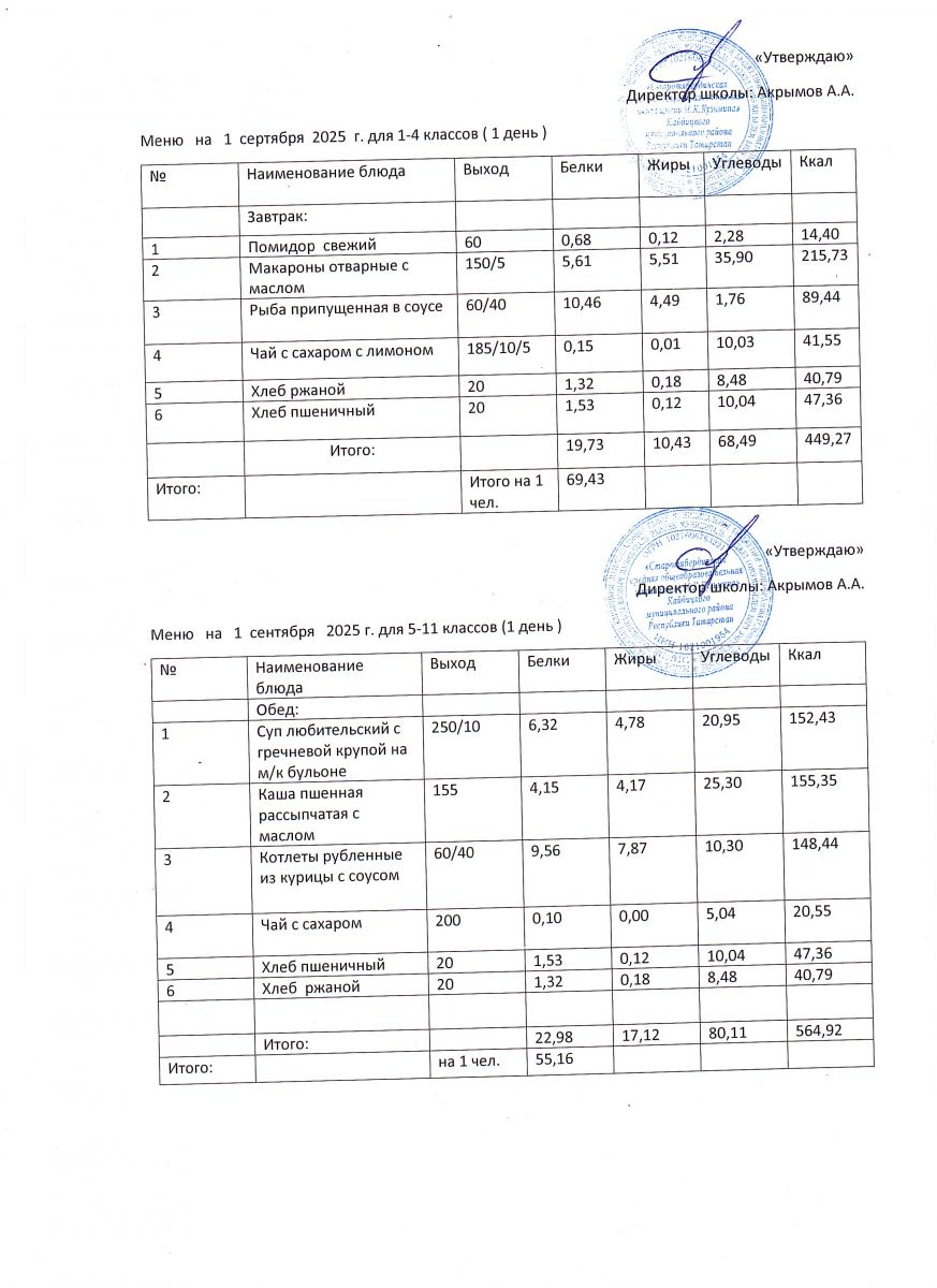 Ежедневное меню учащихся 1-4, 5-11 классов на 2025-2026 уч.год