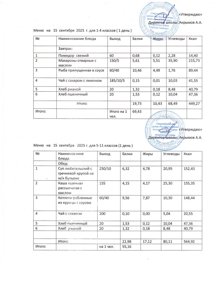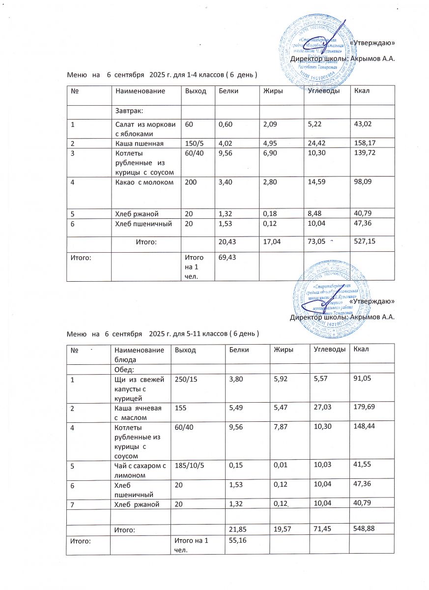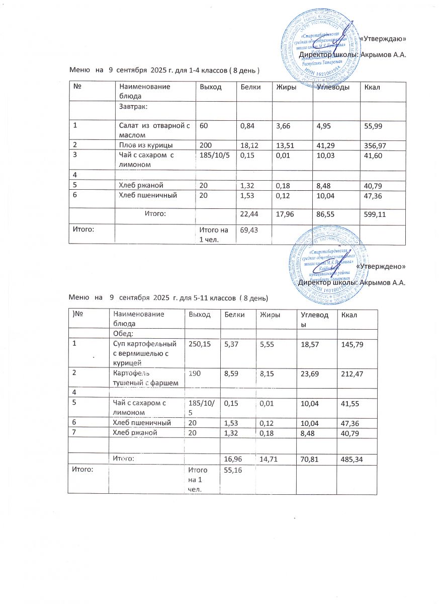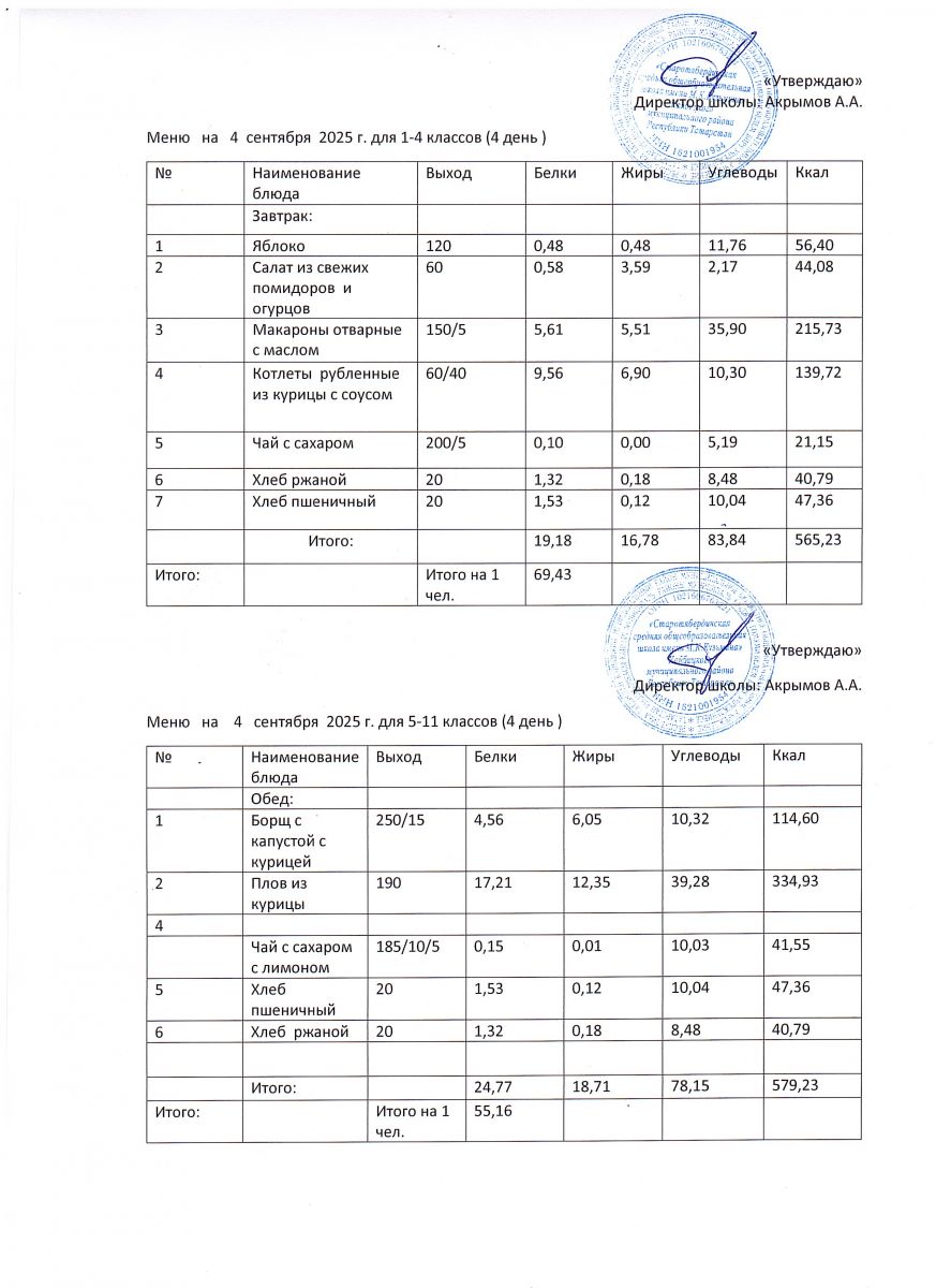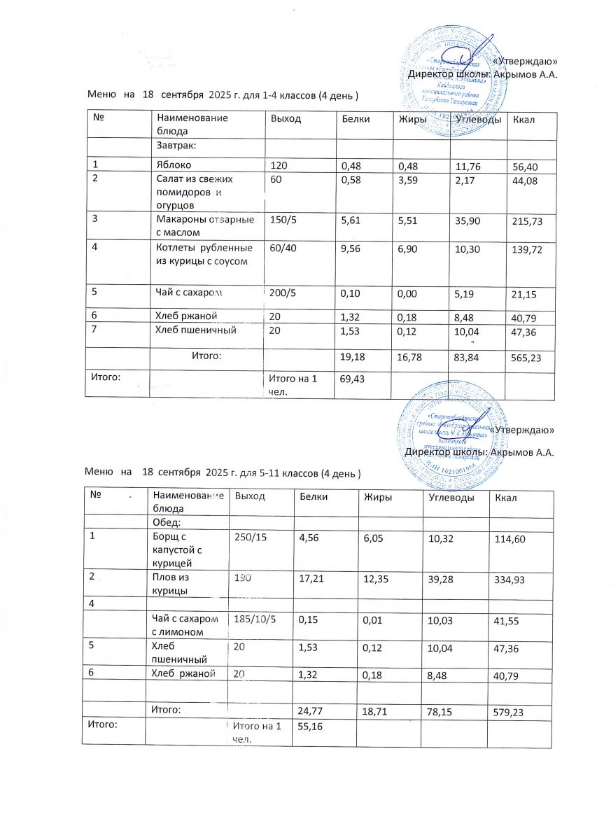 Ежедневное меню учащихся 1-4, 5-11 классов на 2025-2026 уч.год
