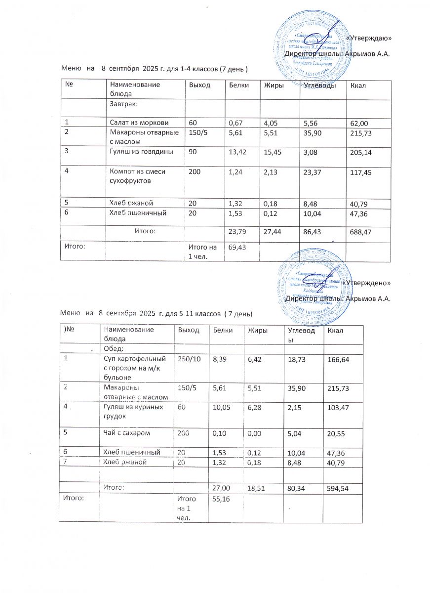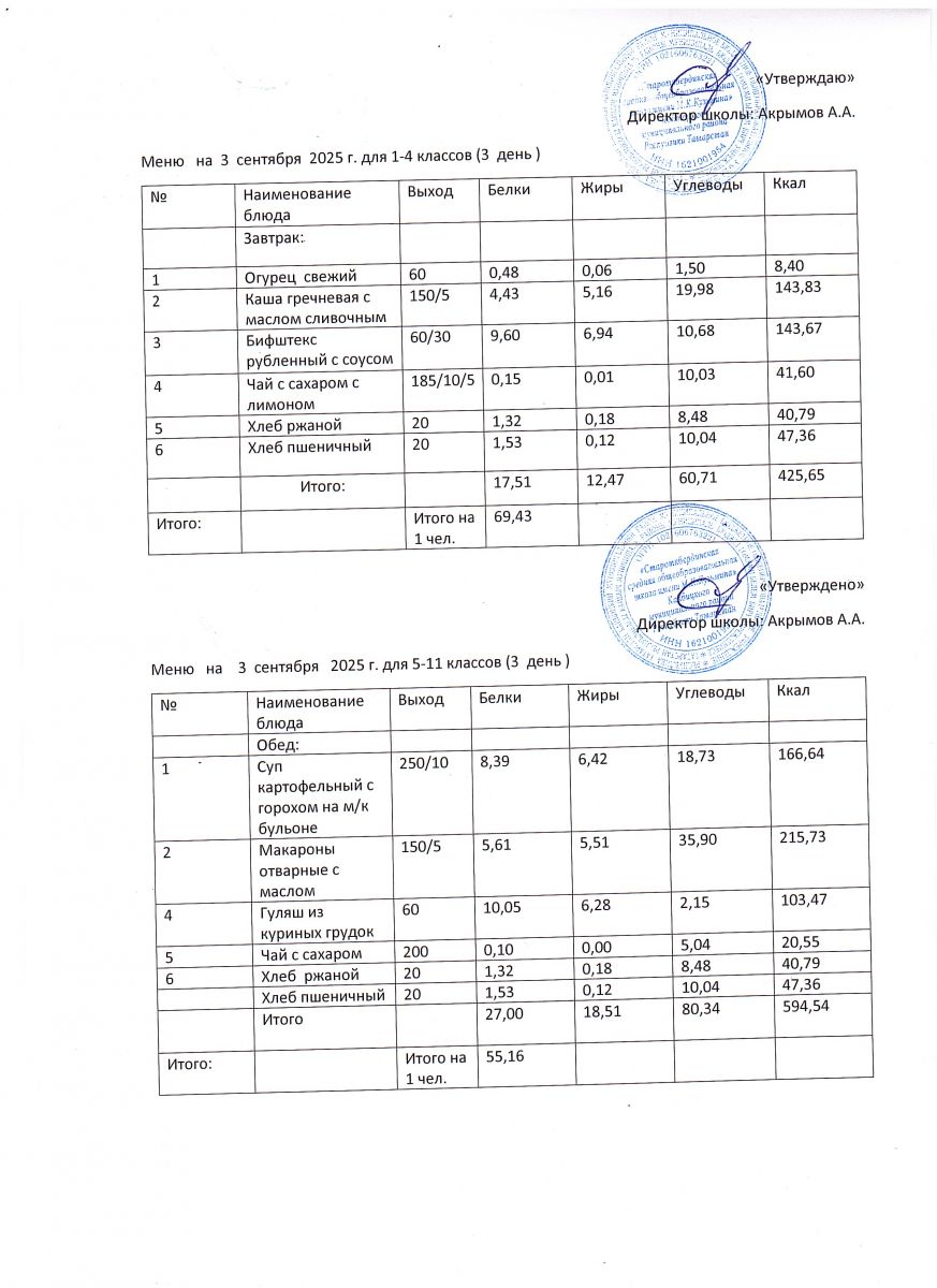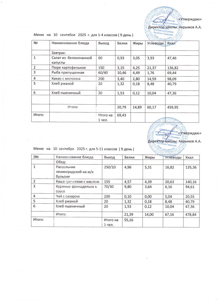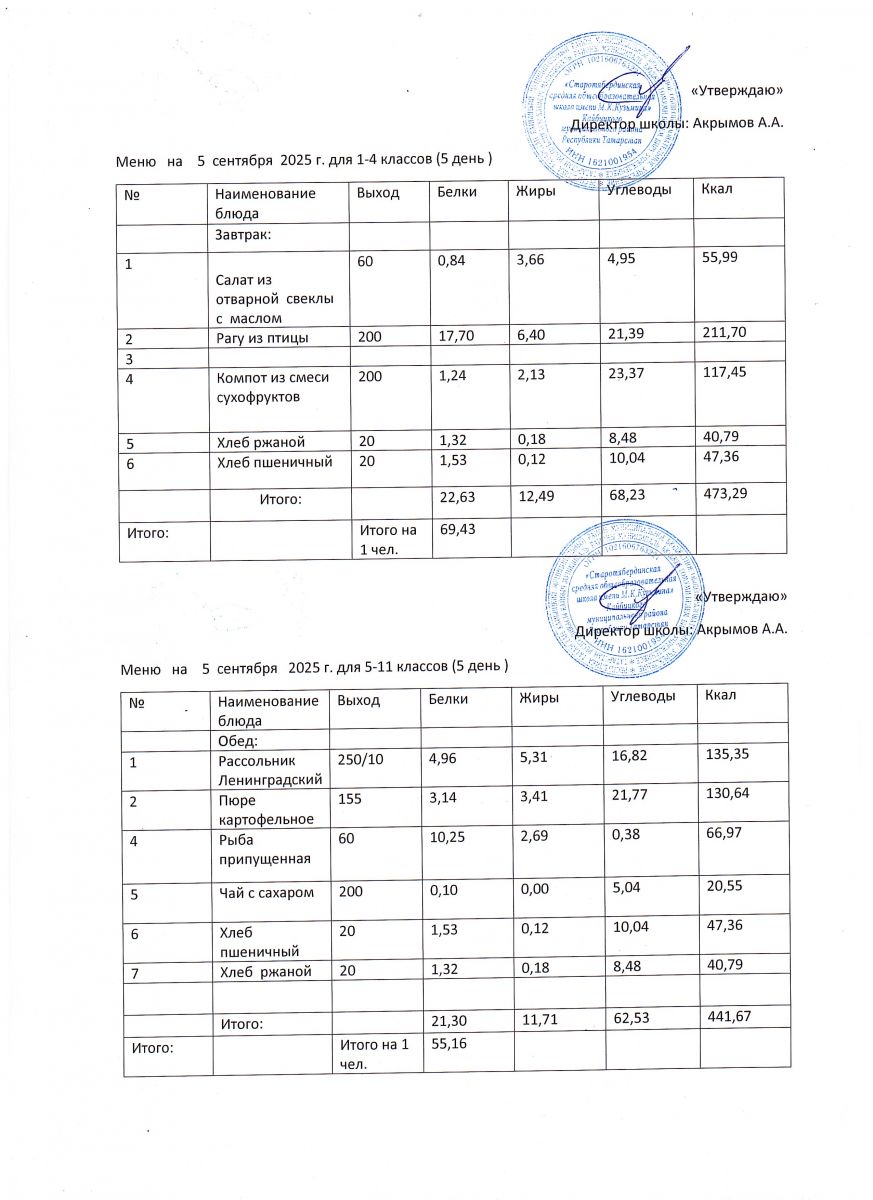 Ежедневное меню учащихся 1-4, 5-11 классов на 2025-2026 уч.год