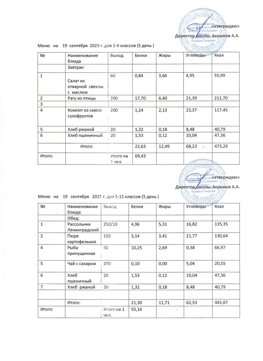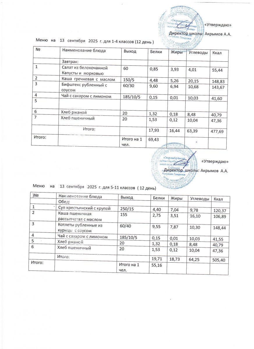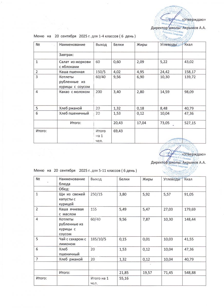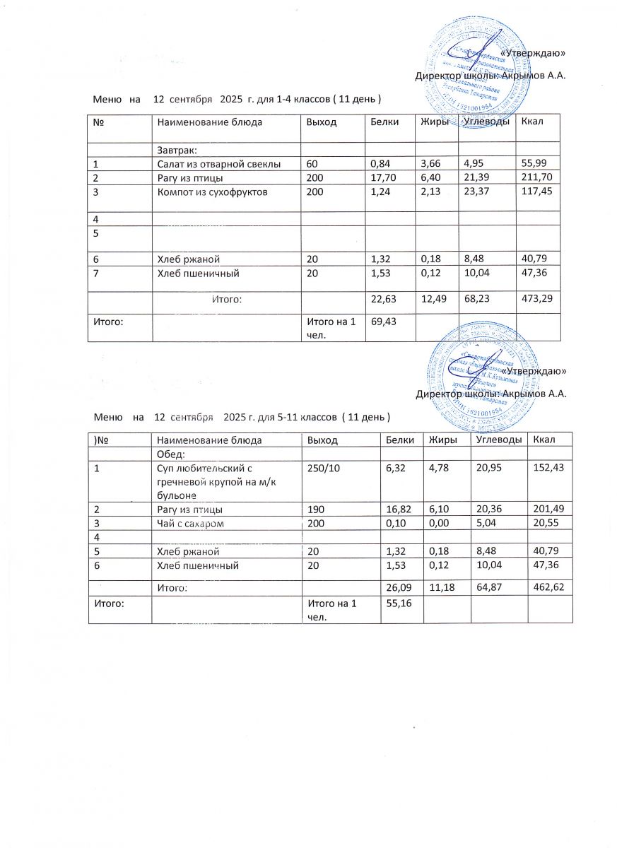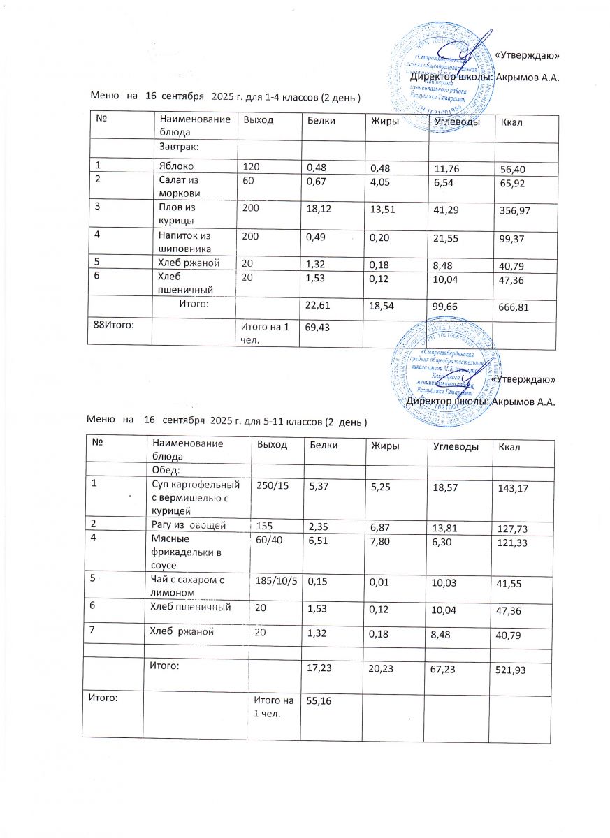 Ежедневное меню учащихся 1-4, 5-11 классов на 2025-2026 уч.год