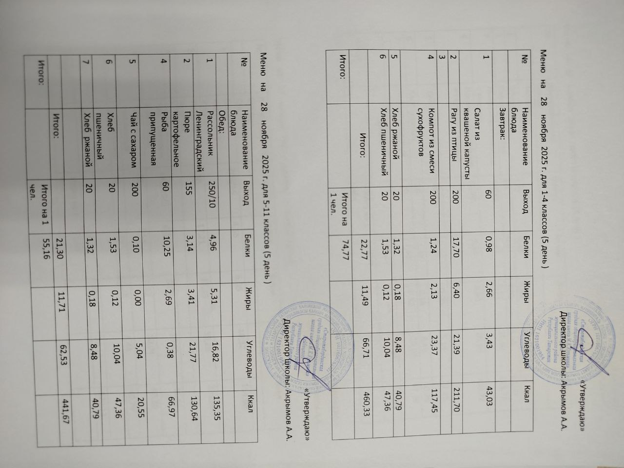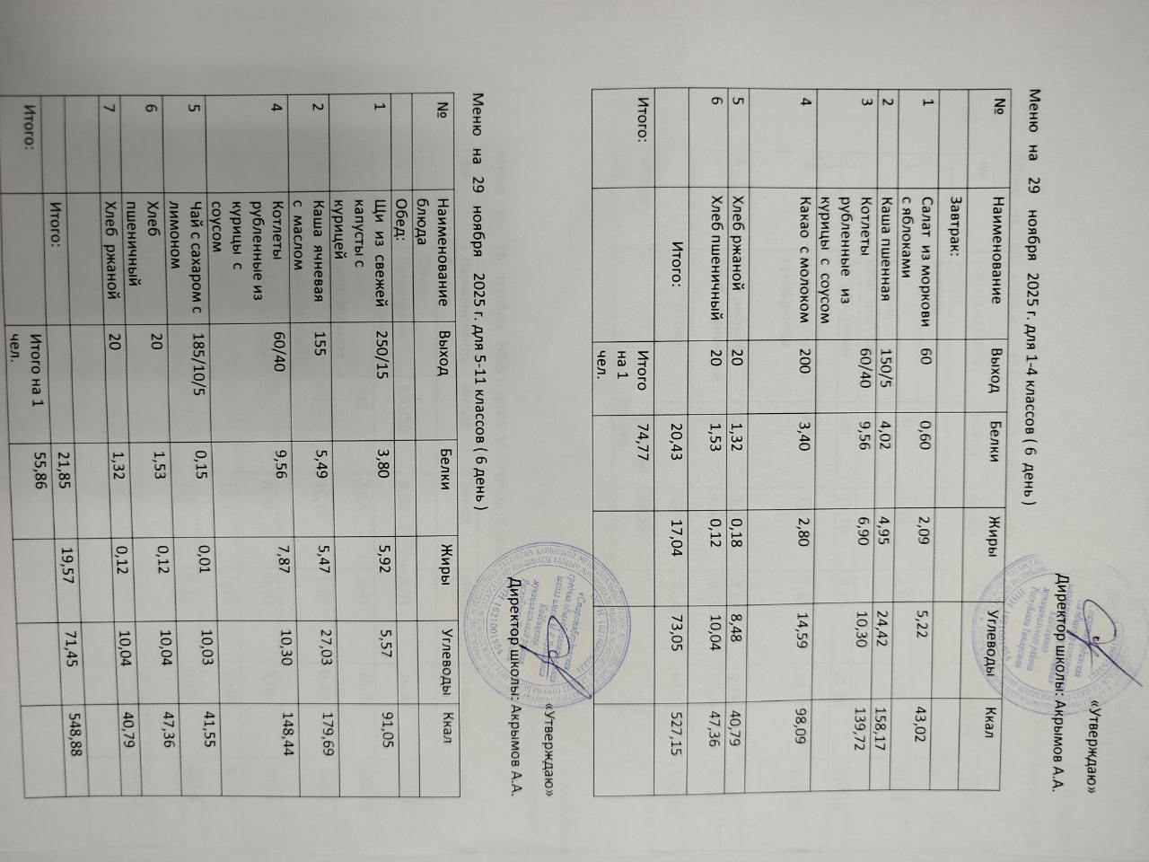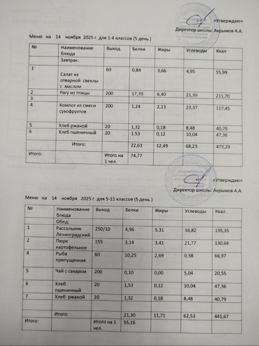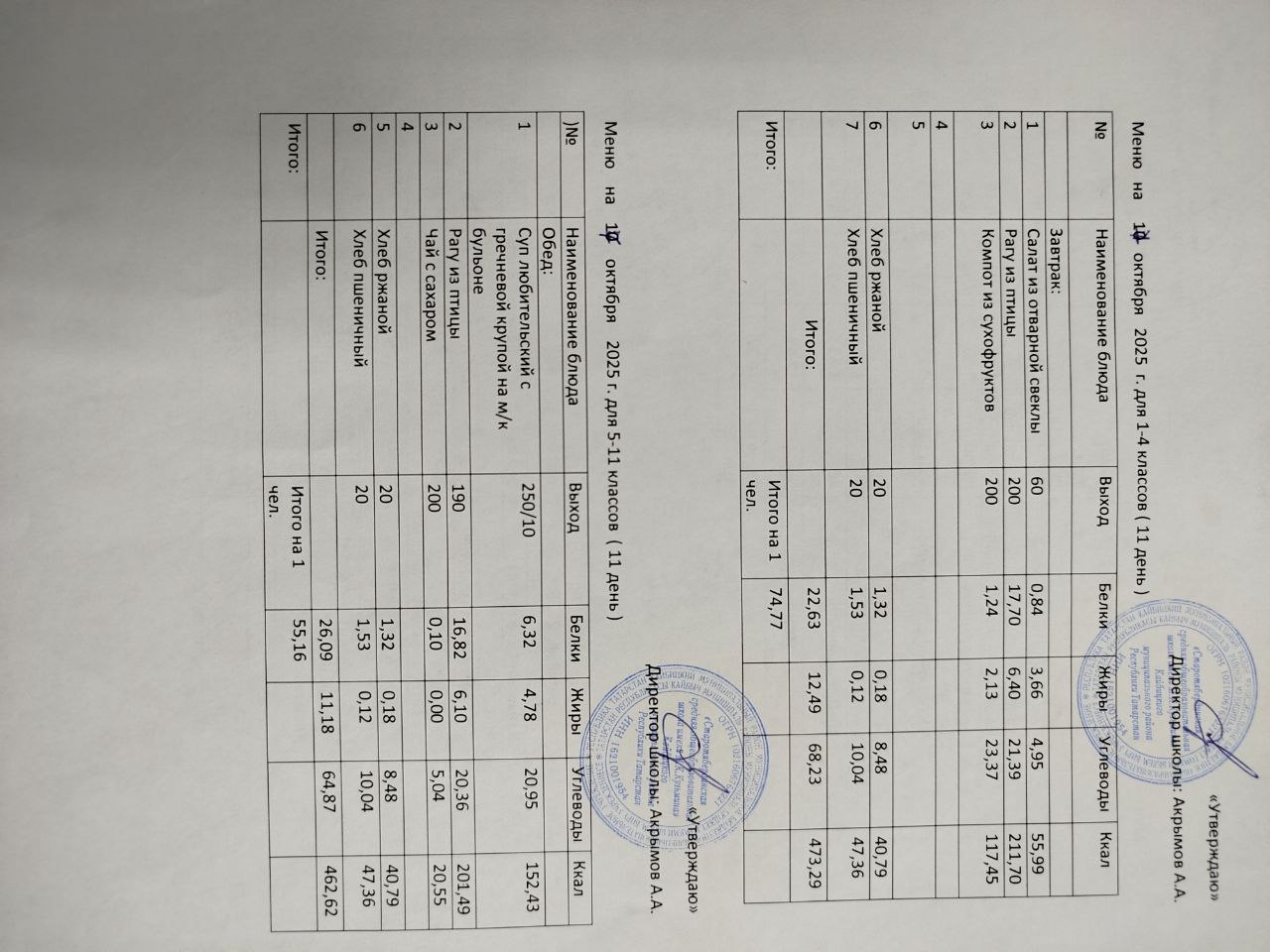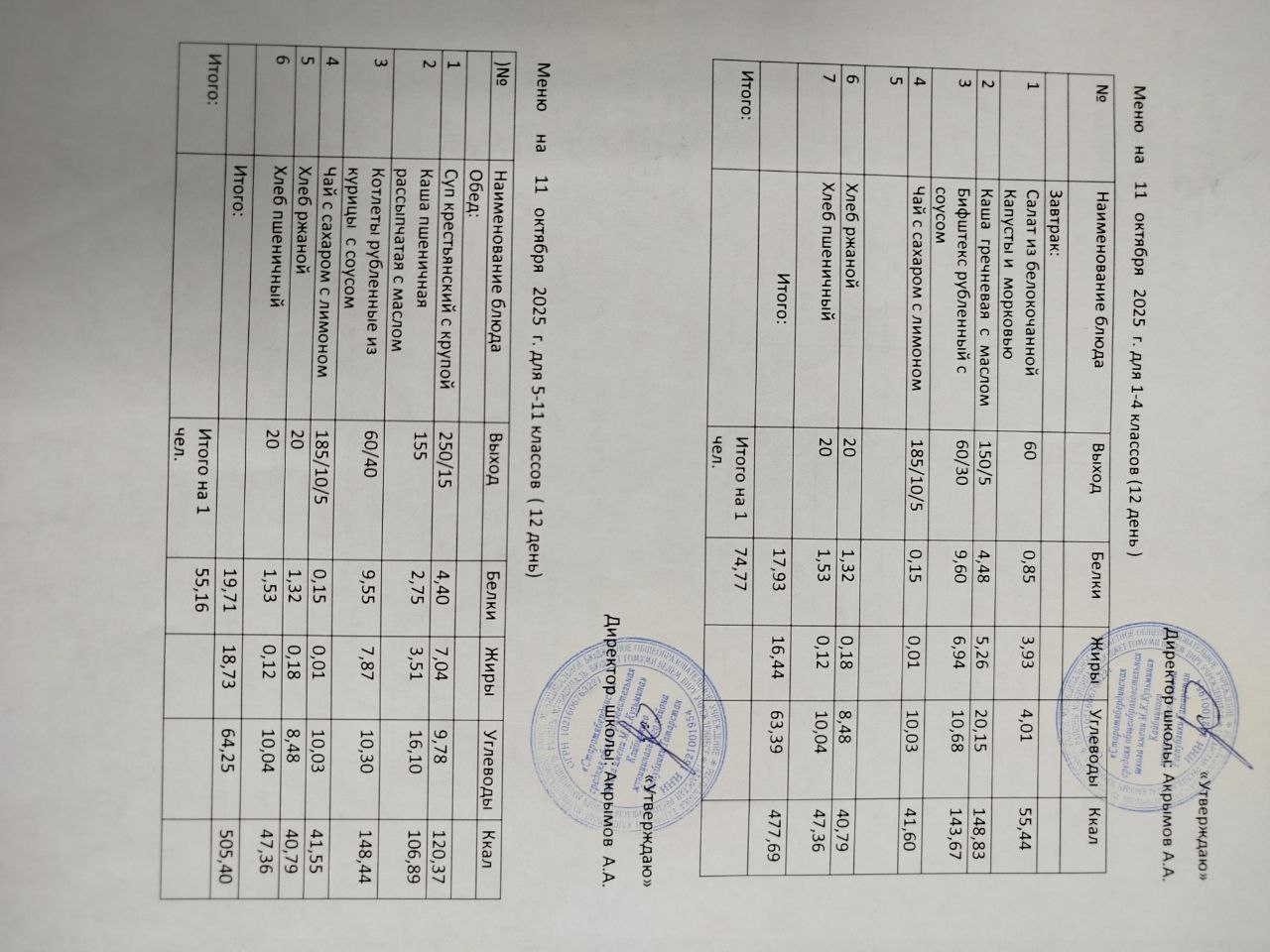 Ежедневное меню учащихся 1-4, 5-11 классов на 2025-2026 уч.год