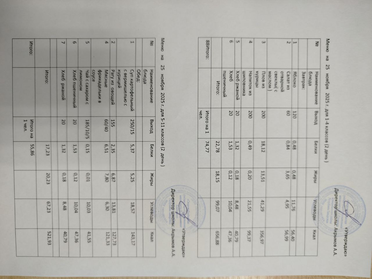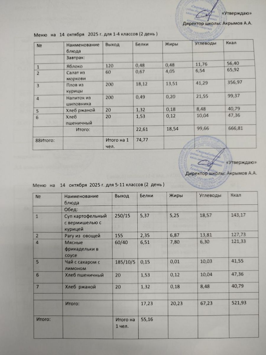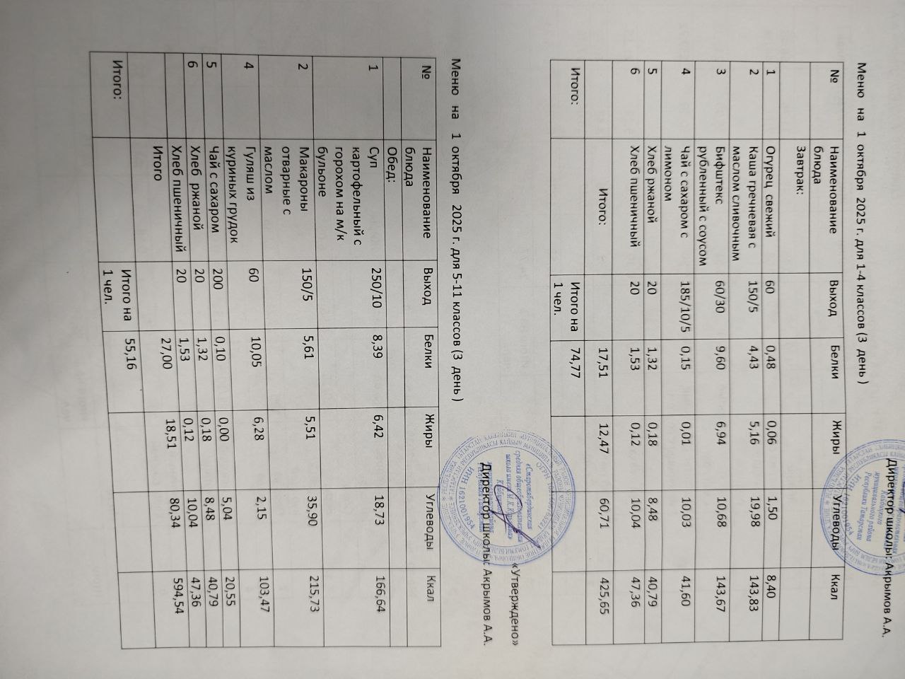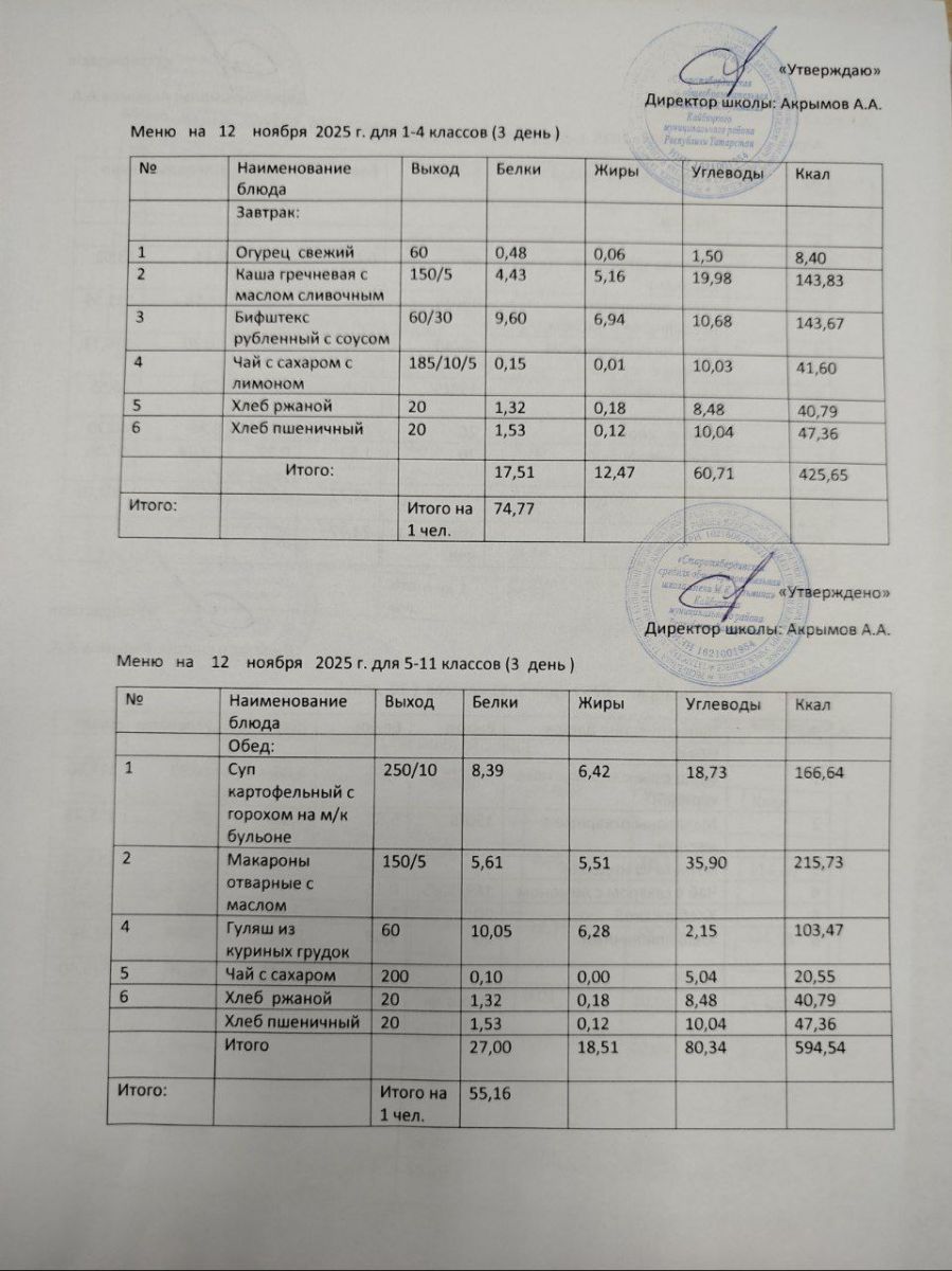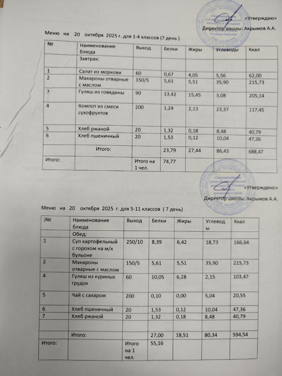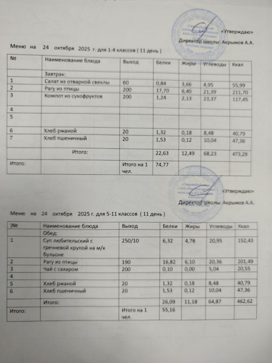 Ежедневное меню учащихся 1-4, 5-11 классов на 2025-2026 уч.год