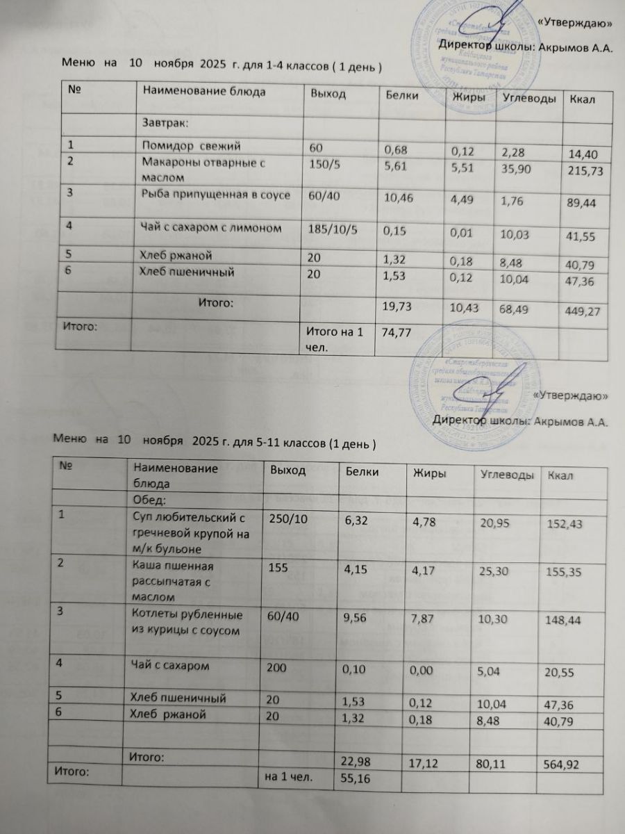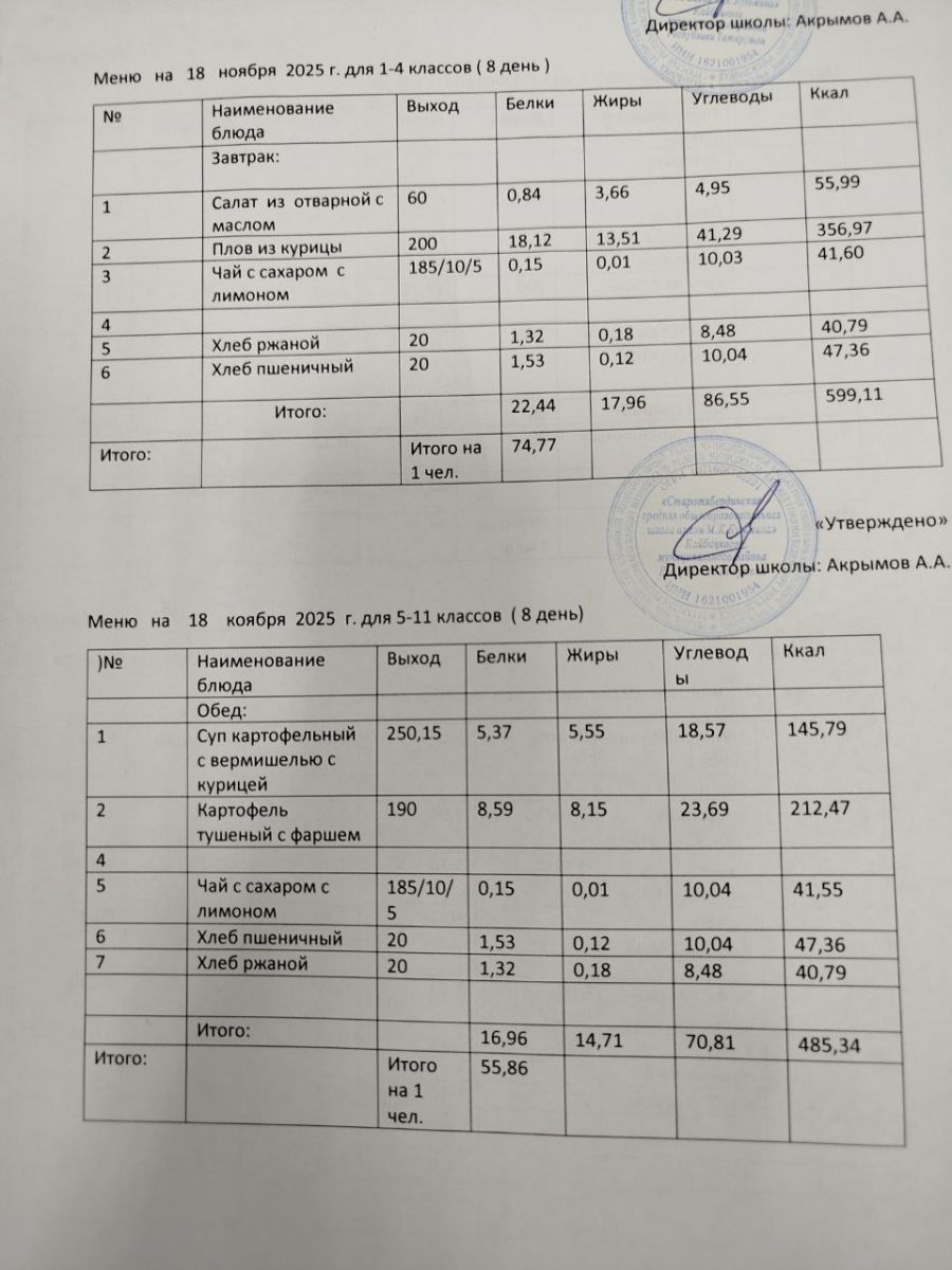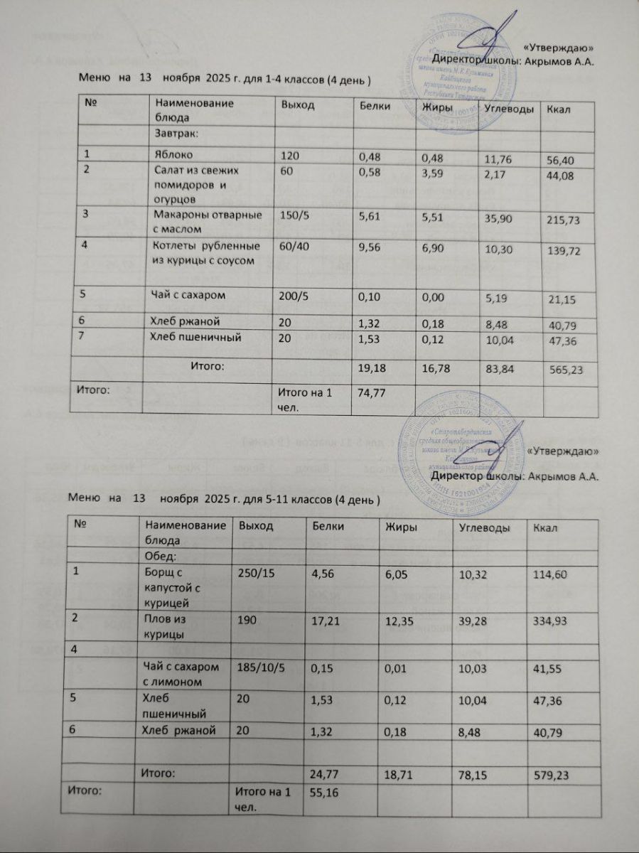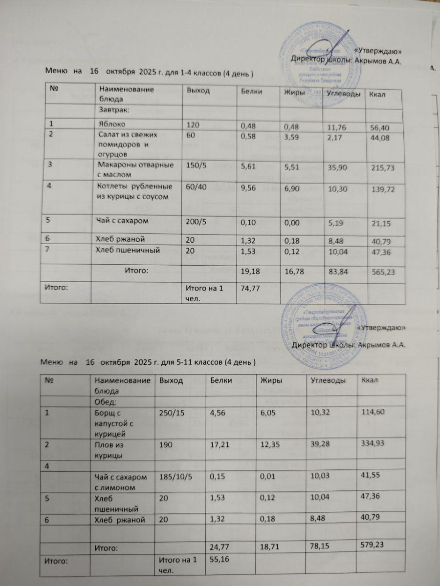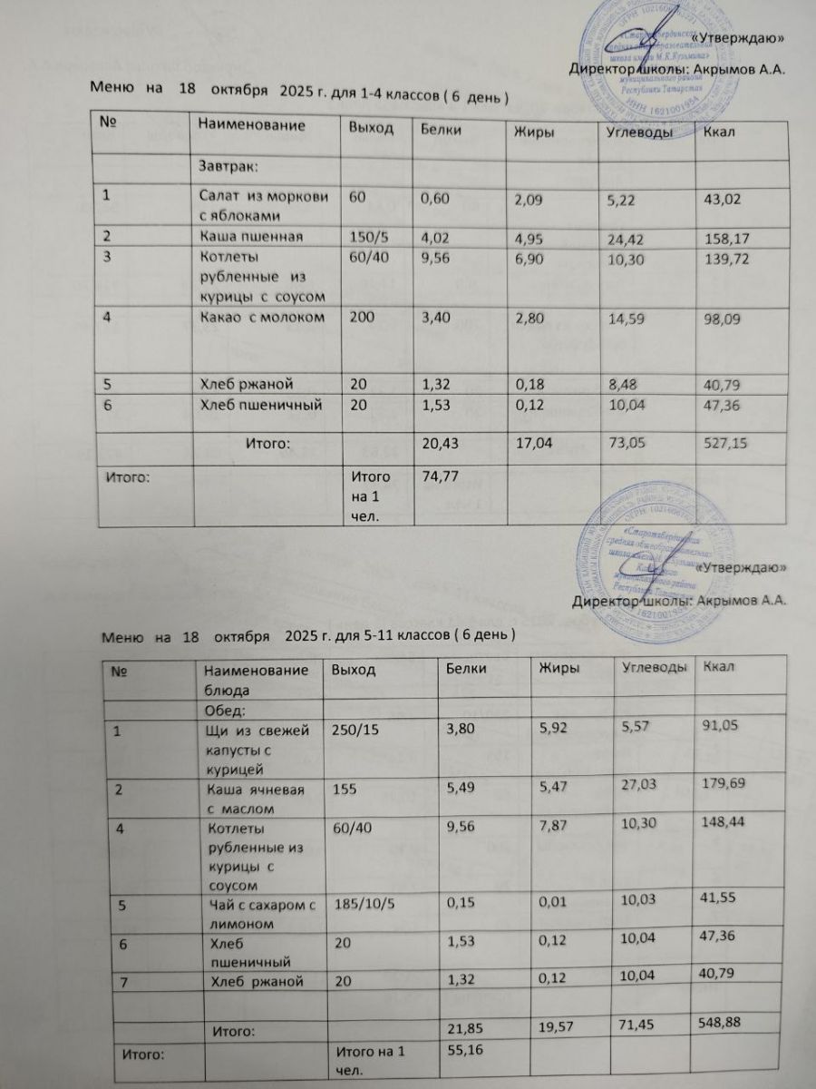 Ежедневное меню учащихся 1-4, 5-11 классов на 2025-2026 уч.год