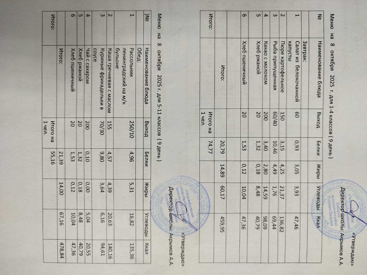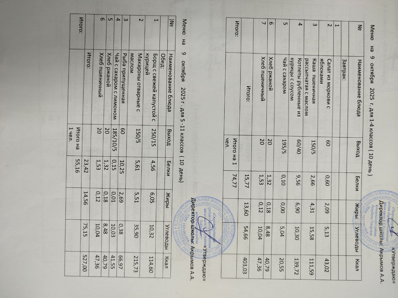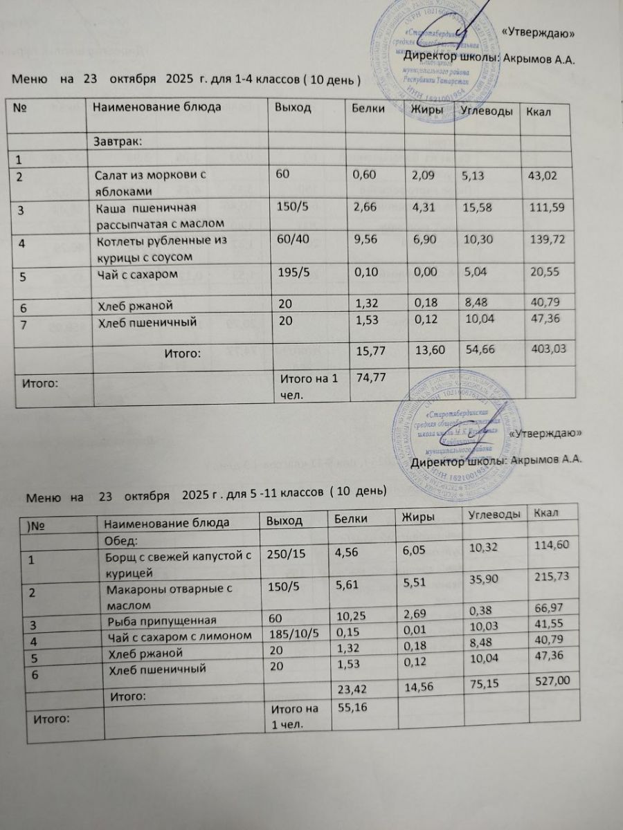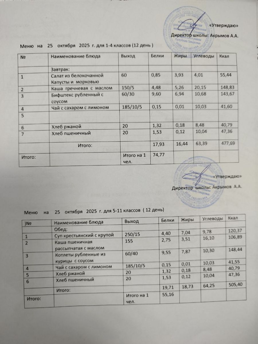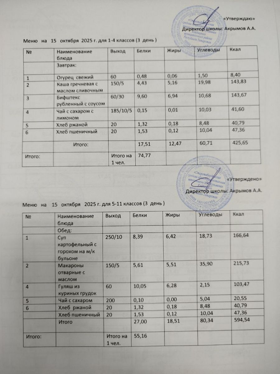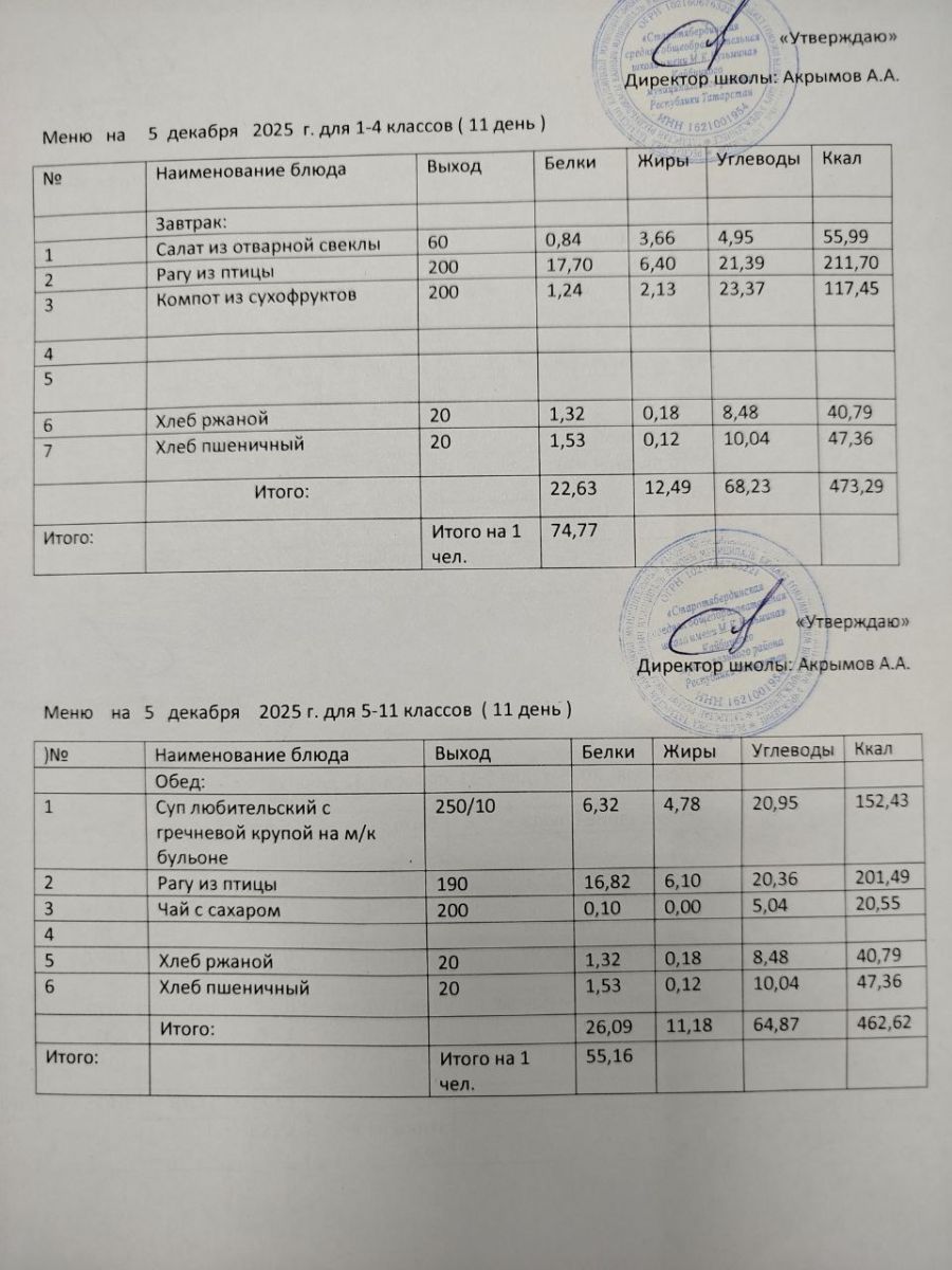 Ежедневное меню учащихся 1-4, 5-11 классов на 2025-2026 уч.год