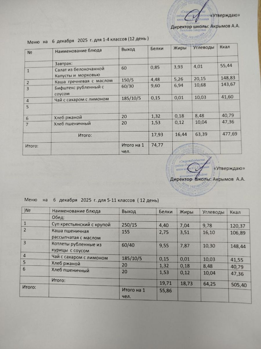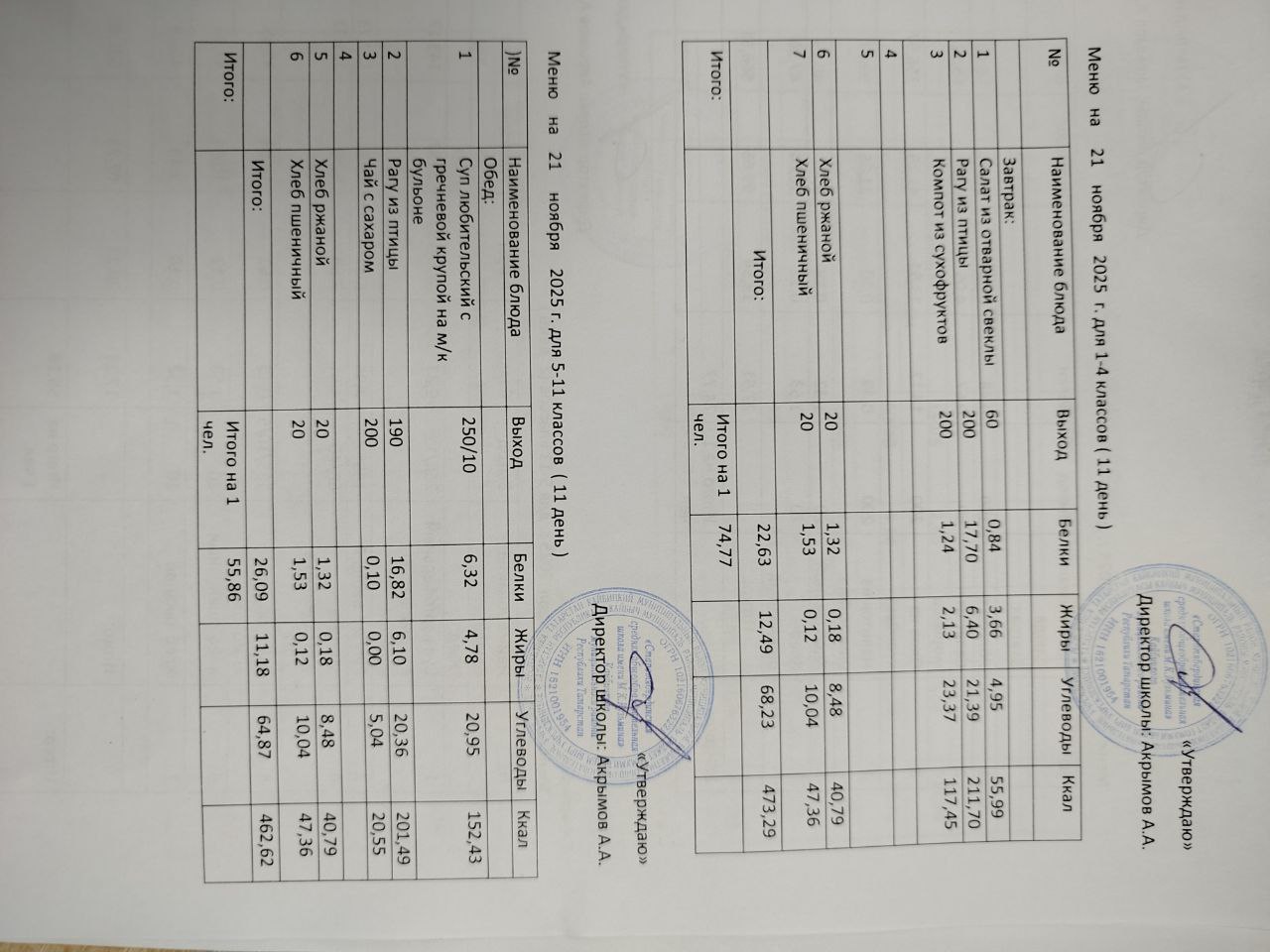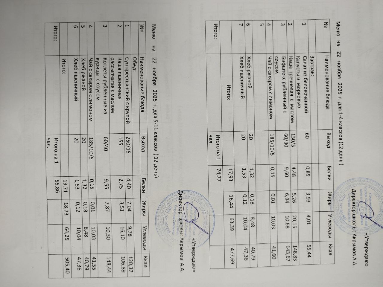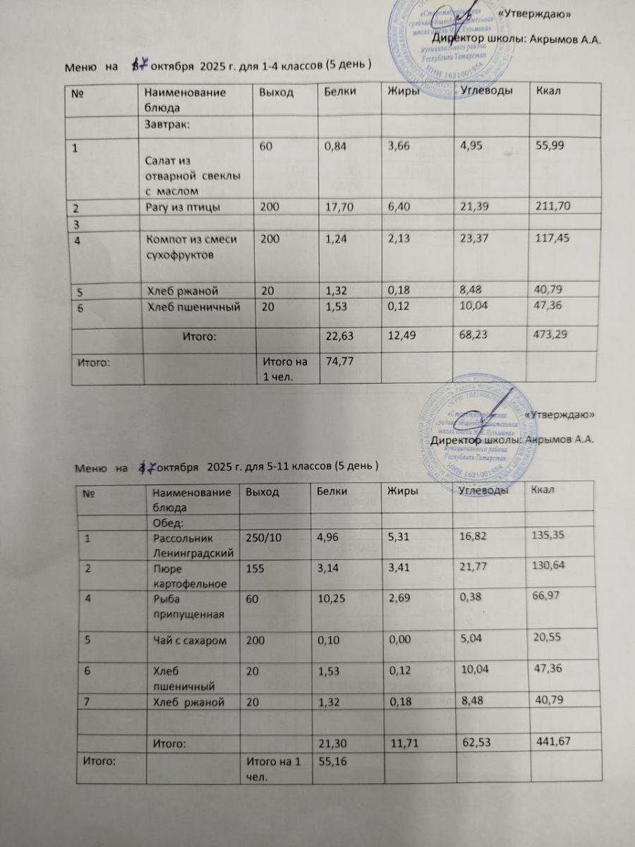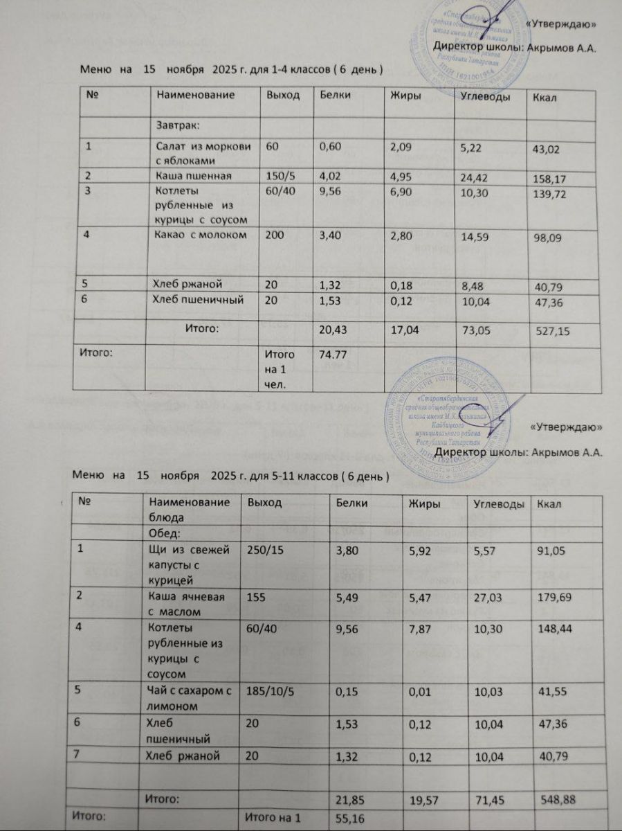 Ежедневное меню учащихся 1-4, 5-11 классов на 2025-2026 уч.год