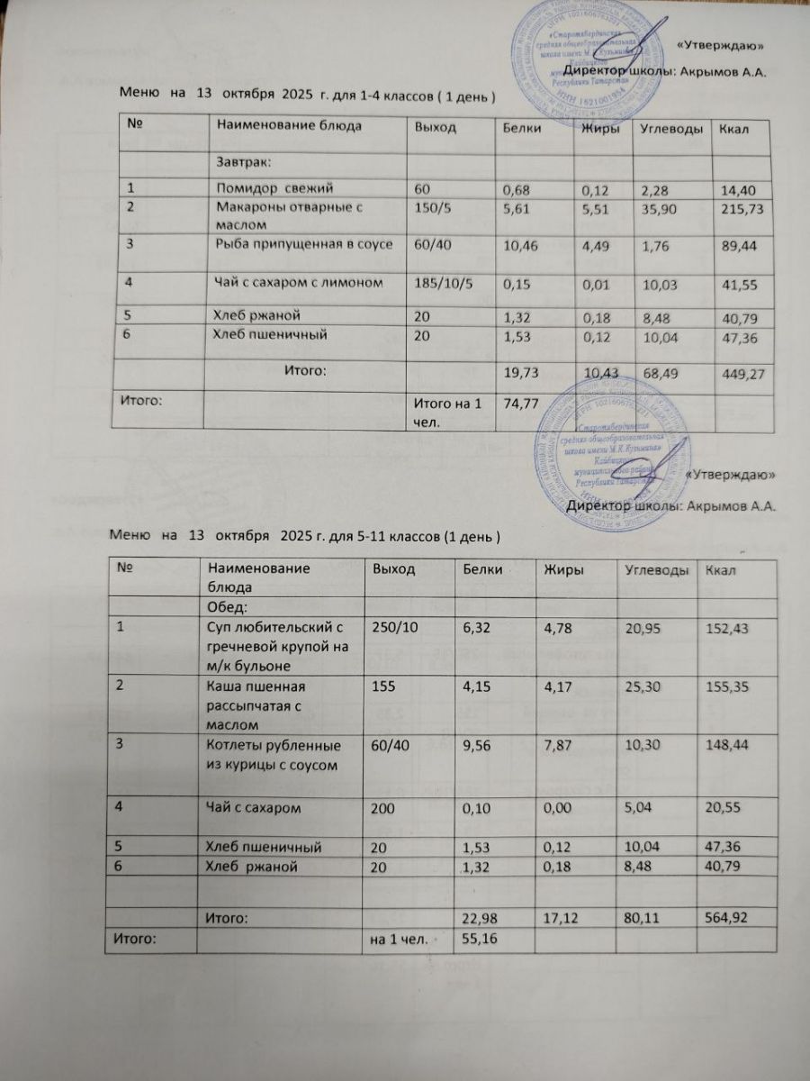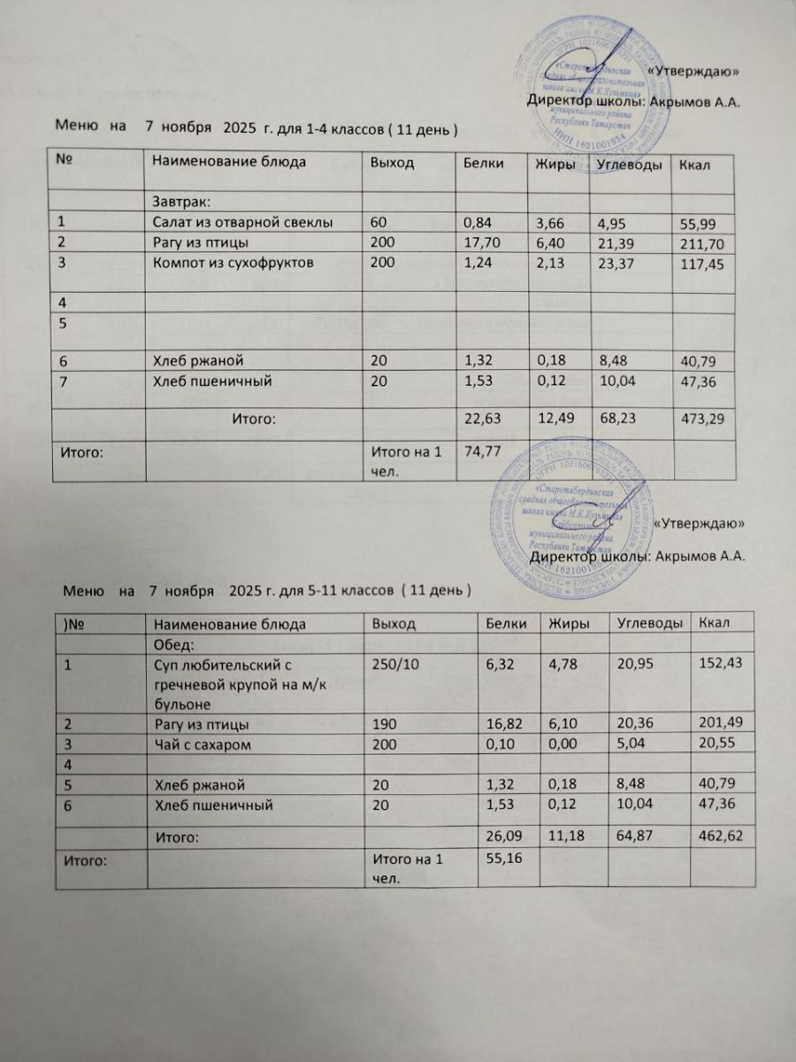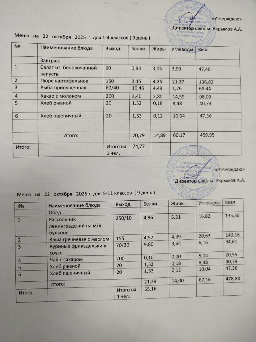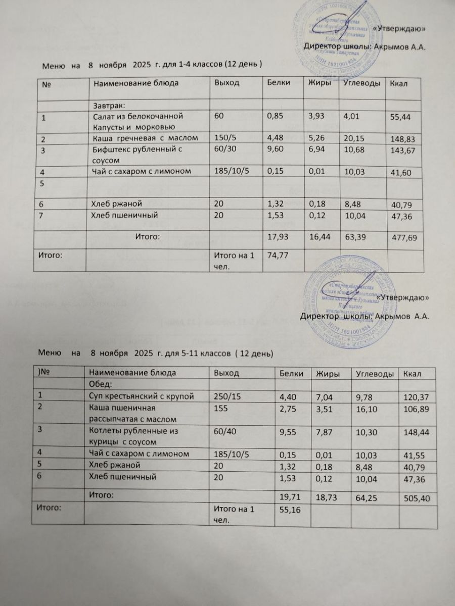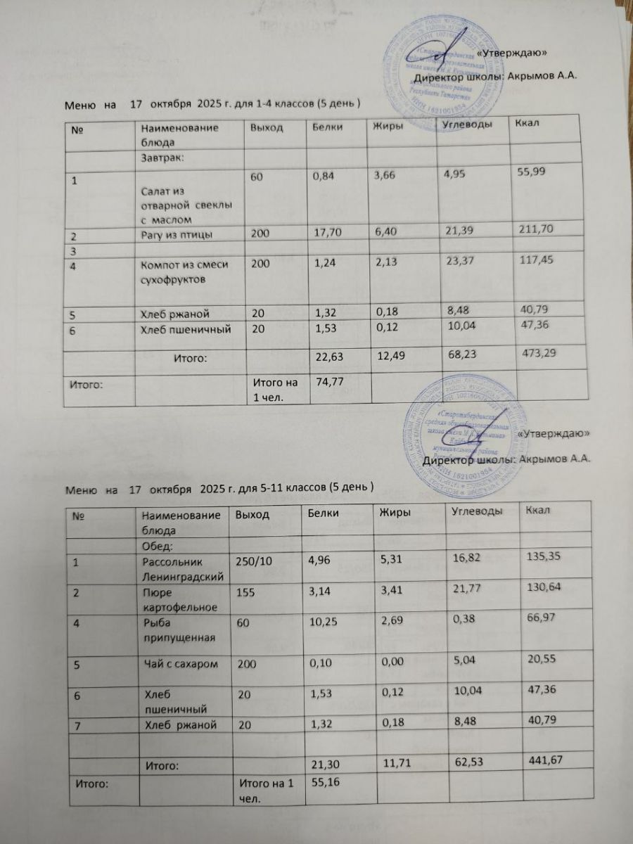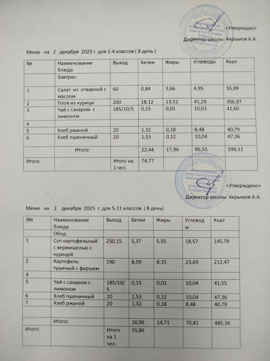 Ежедневное меню учащихся 1-4, 5-11 классов на 2025-2026 уч.год