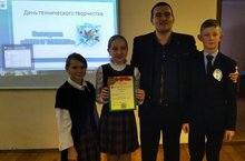 Сегодня учащиеся нашей школы Ю. Корсакова, М. Кормаенков, К. Рыжова, Ю. Галактионова, В. Тякмякова (руководитель Е.В. Мареев) приняли участие в муниципальном конкурсе "Дети и техника", посвящённый дню технического творчества и заняли призовое II место. Молодцы!