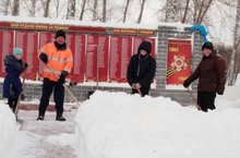 После снежной бури тимуровцы нашей школы под руководством Е.В. Мареева очистили от снега Памятник погибшим односельчанам в годы Великой Отечественной войны