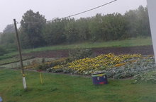 Наш участок и в дождливую погоду солнечный! Бархатцы сверкают. И капусту нашу от вредителей защищают.