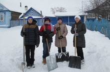 6 нчы сыйныф укучылары Лисина Анна, Никитин Андрей , Блохин Максим сыйныф җитәкчесе Кирилова Евгения Теннадиевна белән Кашарина Мария Ивановна өе алдыннан кар чистарттылар.