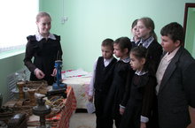 Ученица 7 класса Севастьянова Екатерина провела экскурсию в школьном музее для учащихся начальных классов. Она рассказала детям о предназначении домашней утвари крестьянского быта