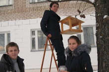 В рамках республиканской акции "Кормушка" учащиеся нашей школы во главе с учителем биологии Стеряковой Н.А. повесили кормушки для птиц.