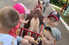 И на тележке детишек катает.Чтобы порадовать детей, в нашем детском саду было организовано маленькое увлекательное путешествие - катание на пони. Восторгу детей не было предела!