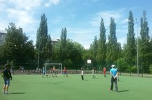 На футбольном поле в товарищеском матче встретились сборные команды пришкольных лагерей гимназии № 152 и школы 151. В упорной борьбе со счетом 5:3 выиграла команда лагеря «Солнышко» нашей гимназии!