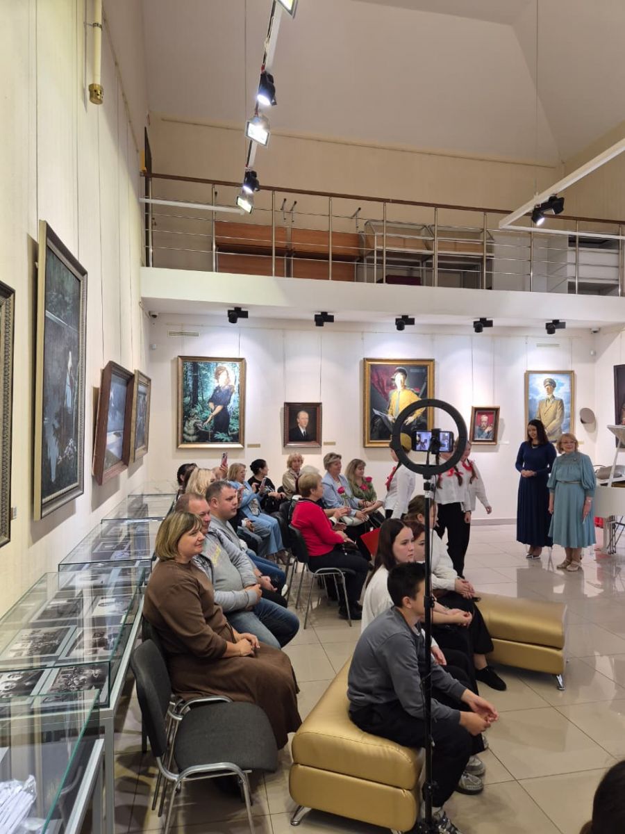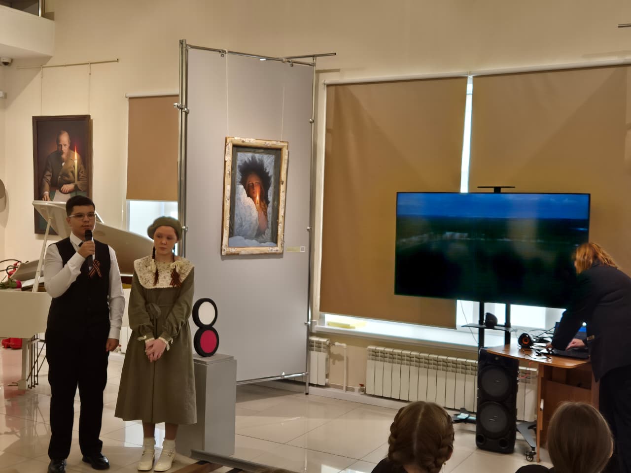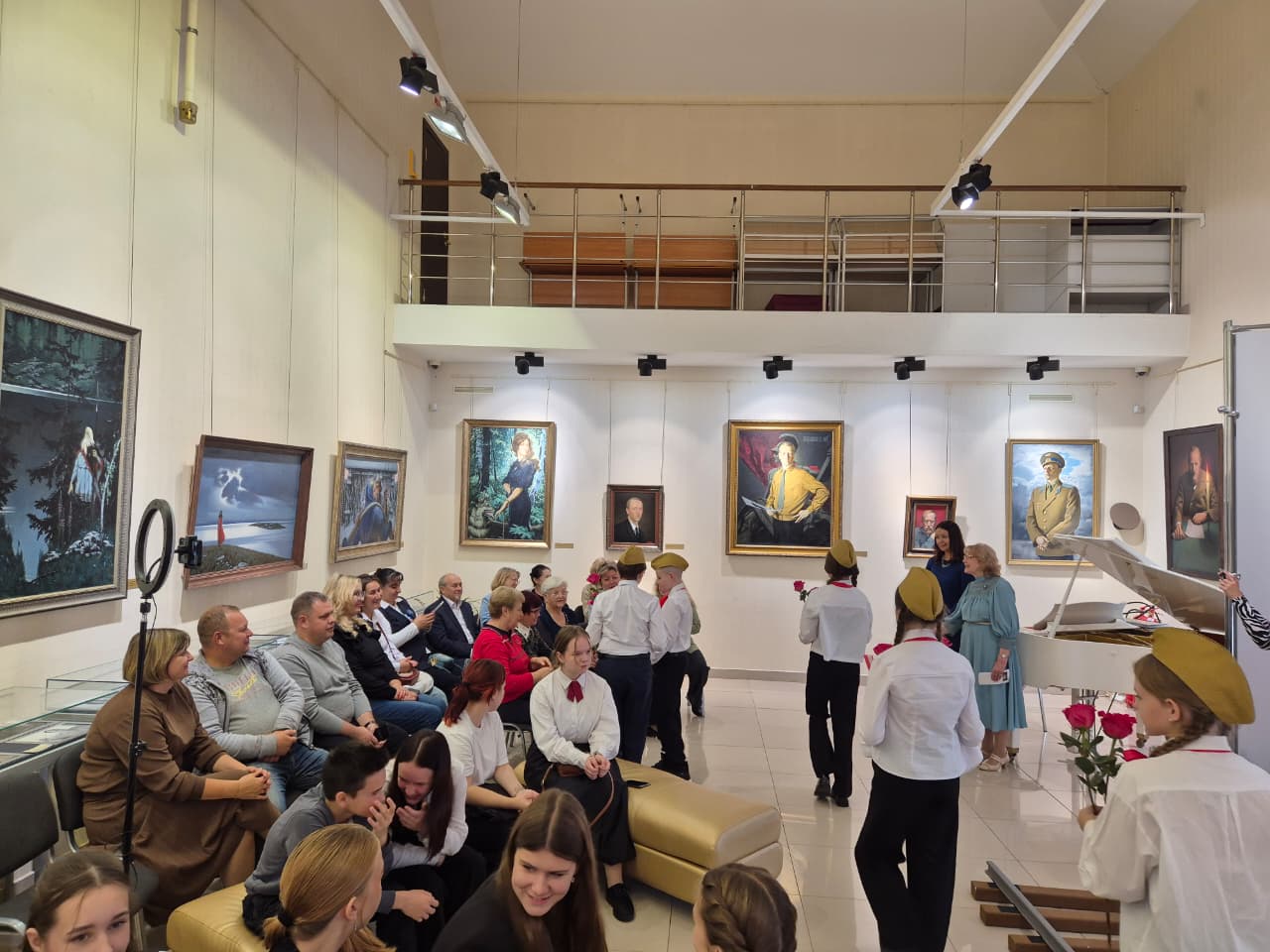 Экскурсия погрузила гостей в атмосферу военной эпохи через уникальные картины, созданные Константином Васильевым. Его произведения ярко отражают события Великой Отечественной войны, наполнены глубоким чувством уважения к подвигу народа и несут особую эмоциональную нагрузку. Юные гиды подробно рассказывали истории картин, подчеркивая значимость художественного наследия Васильева в формировании гордости за историю своей Родины.