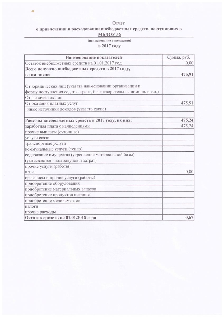 Отчет о поступлении и расходованию внебюджетных средств, в 2017 году