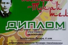 Поздравляем воспитанницу нашего сада Загидуллину Диляру и логопеда Хакимову М.А. с дипломом I Всероссийского фестиваль-конкурса Туган телем Тукай теле!