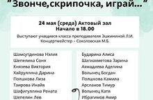 24 МАЯ В 18.00 ПРИГЛАШАЕМ ВСЕХ НА ВЕЧЕР СКРИПИЧНОЙ МУЗЫКИ "ЗВОНЧЕ СКРИПОЧКА, ИГРАЙ..."