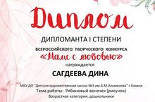 Ученика "ДХШ №3 им.Б.М.Альменова" ,решением жюри, стала победителем во Всероссийского конкурса, посвященного памяти павших на полях сражений во всех битвах "Летят в бессмертие журавли". Диплом I степени в номинации "Журавли нашей памяти..."