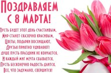 Самый нежный, светлый и прекрасный день в году — 8 Марта! Начало весны, начало жизни в природе, первое тепло. Дорогие девушки, женщины, пусть это тепло поселится в ваших домах и душах. Пусть красота природы вдохновляет. А начало весны символизирует начало чего-то очень желанного и прекрасного в вашей жизни! С праздником!