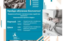 ВНИМАНИЕ! Начинаем обучение граждан в рамках федерального проекта «Активные меры содействия занятости» национального проекта «Кадры»!