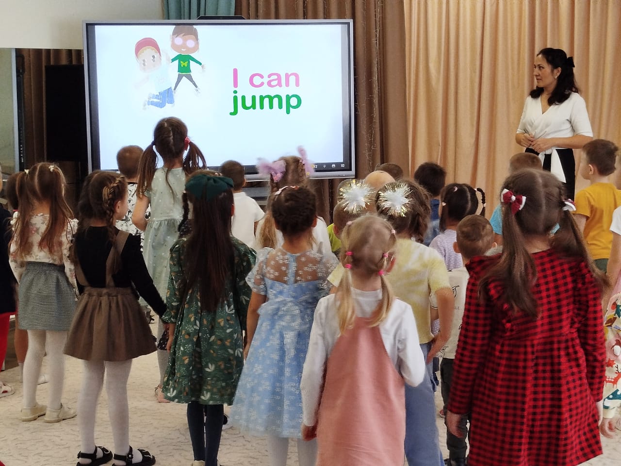 Уен формасында балалар бакчасында инглиз телен өйрәнү аларның шәхси сыйфатларын камилләштерергә булыша, телне өйрәнү вакытында алынган уңай хис-кичерешләр шулай ук мәктәпкә киткәч тә ярдәмгә килә. Бүген Сафина А.Ф. инглиз теленә йөрүче балалар белән бик кызыклы ачык шөгыль күрсәтте. Әти-әниләр балаларның ничек инглиз телендә иркен аралашуын, җырлар башкаруын күзәтә алды, үзләрен дә сынап карады. Ачык шөгыль бик күңелле һәм нәтиҗәле үтте.