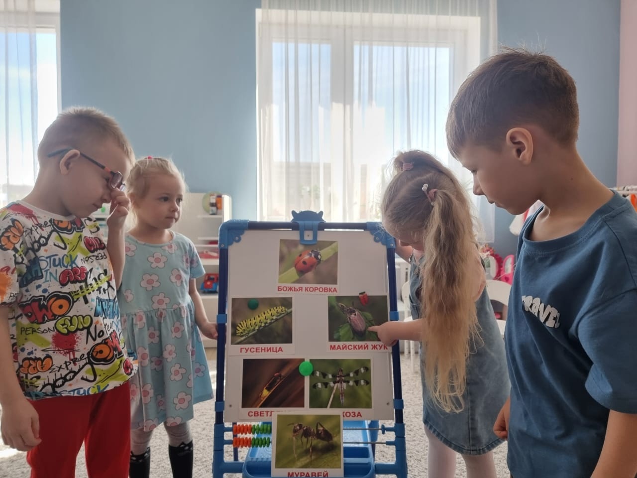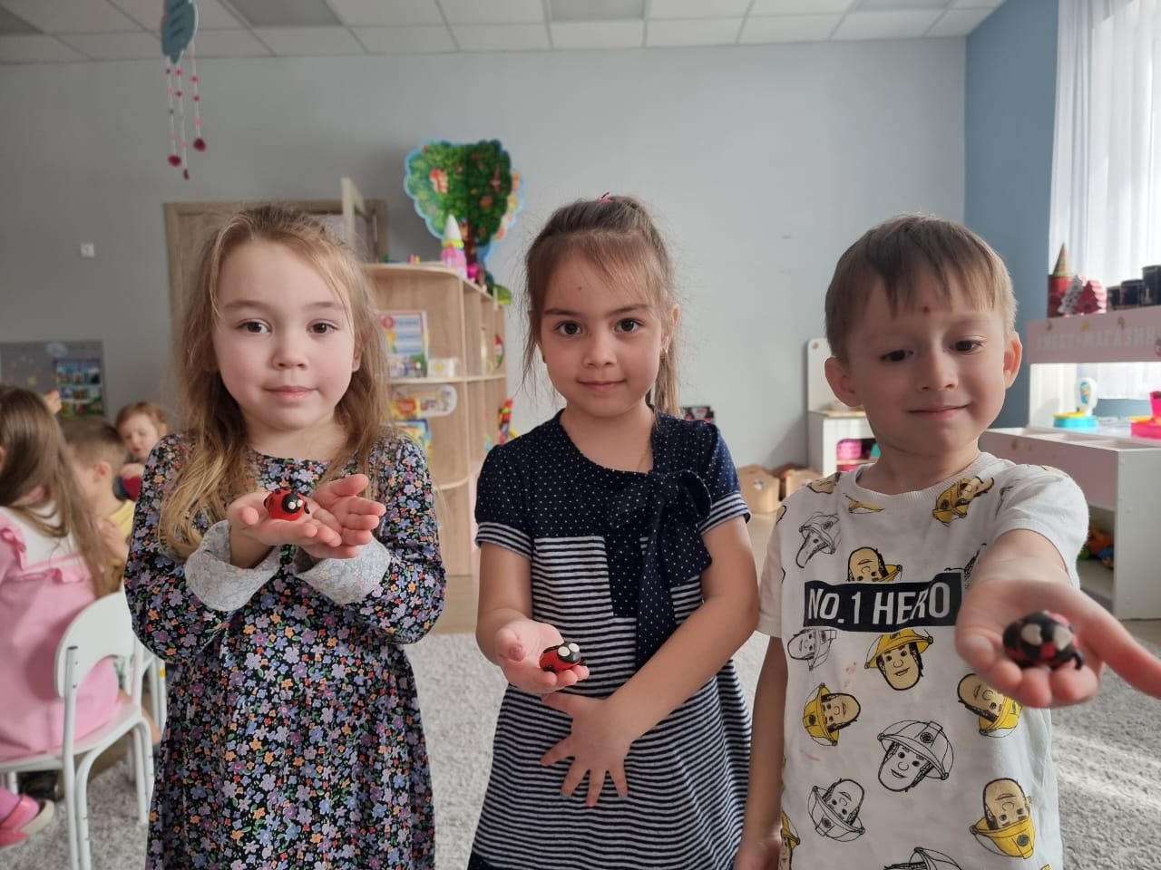В средних группах прошла тематическая неделя на тему: «Насекомые». Дети с интересом рассматривали иллюстрации в книгах о насекомых, открытках, отгадывали загадки о насекомых. В продуктивной деятельности - лепка, дети с удовольствием лепили «Божью коровку». На прогулке дети с интересом, восторгом и удивлением наблюдают за насекомыми.