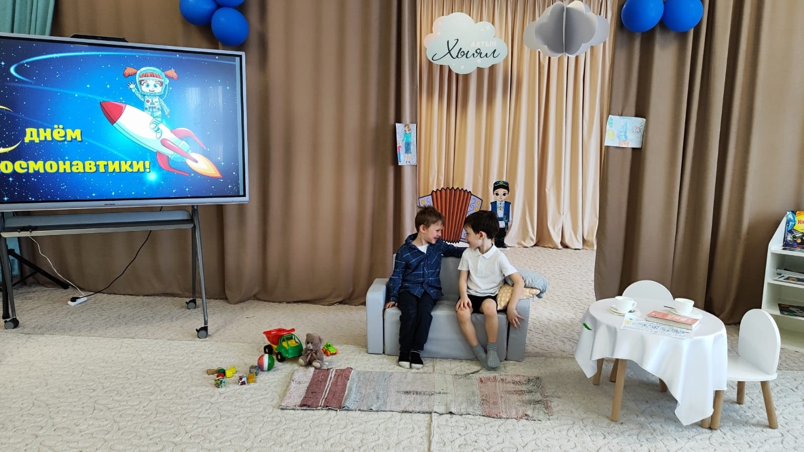 В честь дня космонавтики старшая группа N18 показала спектакль "Дотянуться до мечты", в котором рассказывается о Великом космонавте Юрии Гагарине, как он в первый раз полетел в космос