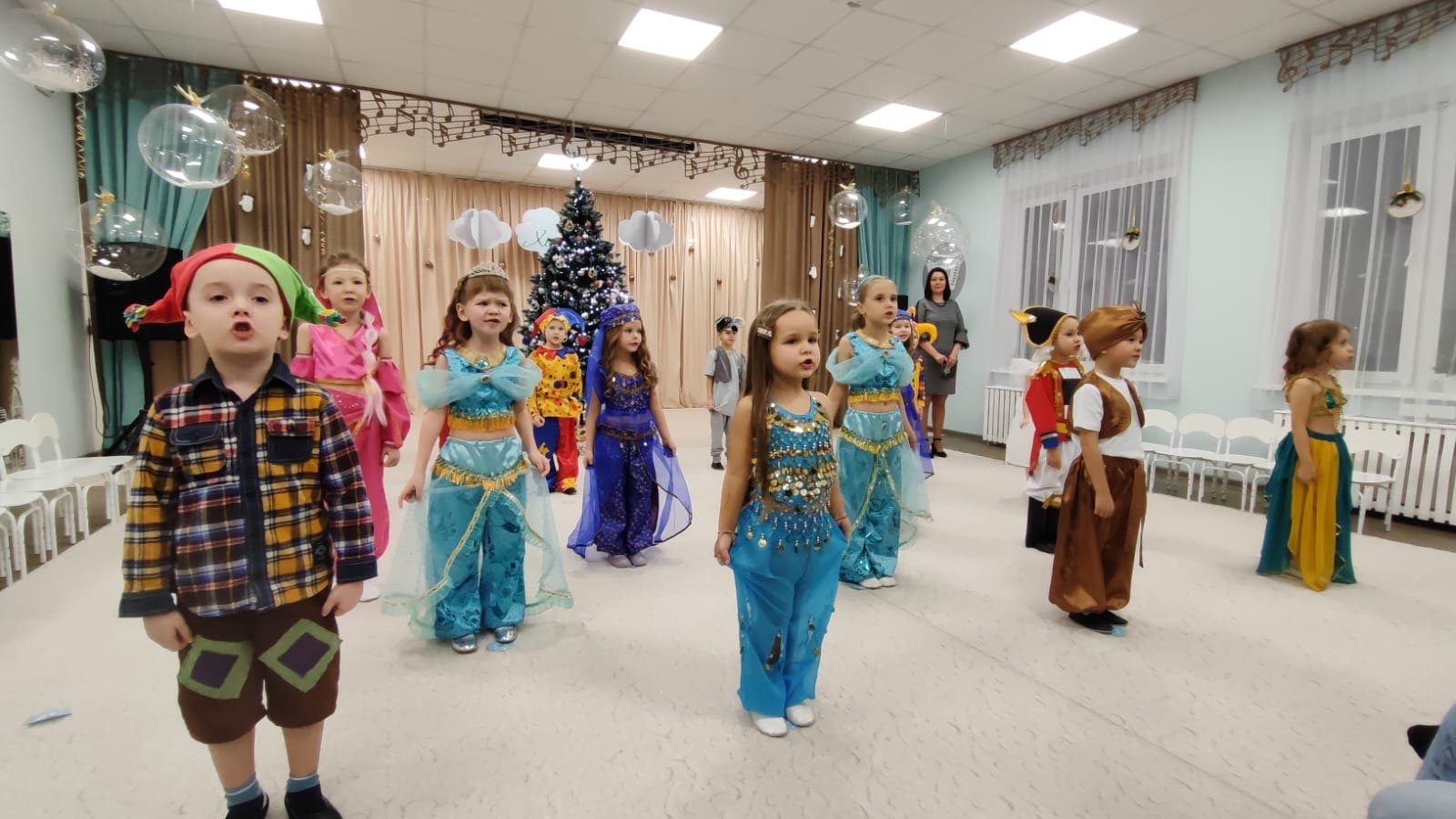 Бәйрәмдә балалар җырладылар, биеделәр, күңелле уеннар уйнадылар, Яңа ел бүләкләренә куандылар.