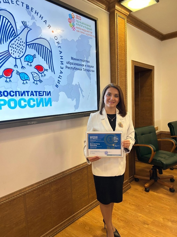 Безнең балалар бакчасы мөдире Биктова Алсу Ниязовна "Россия тәрбиячеләре" 11 Бөтенроссия конкурсында 1 урынны яулады. Алсу Ниязовнаны чын күңелебездән котлыйбыз һәм аңа киләчәктә дә җиңүләр һәм зур уңышлар телибез! -