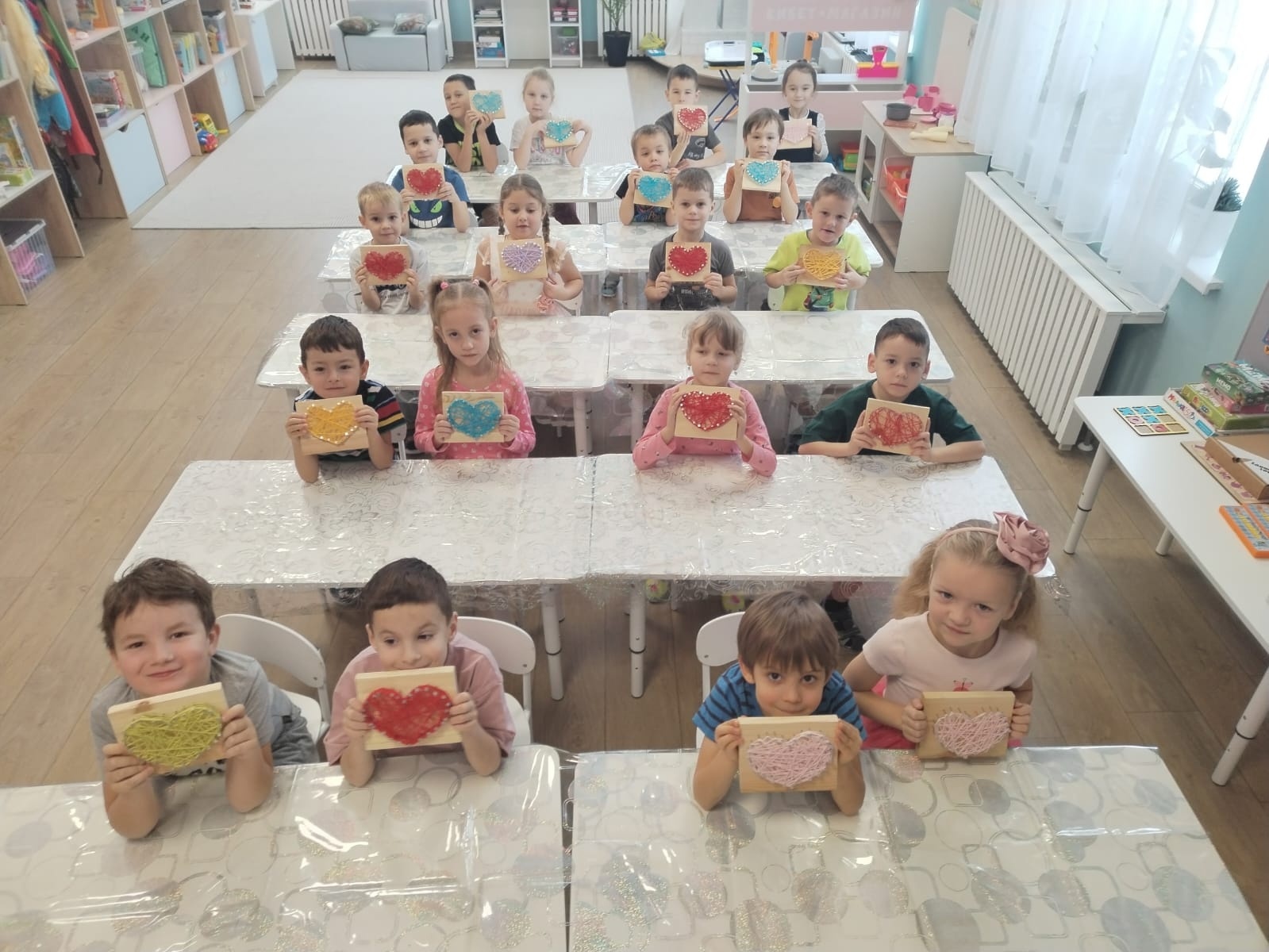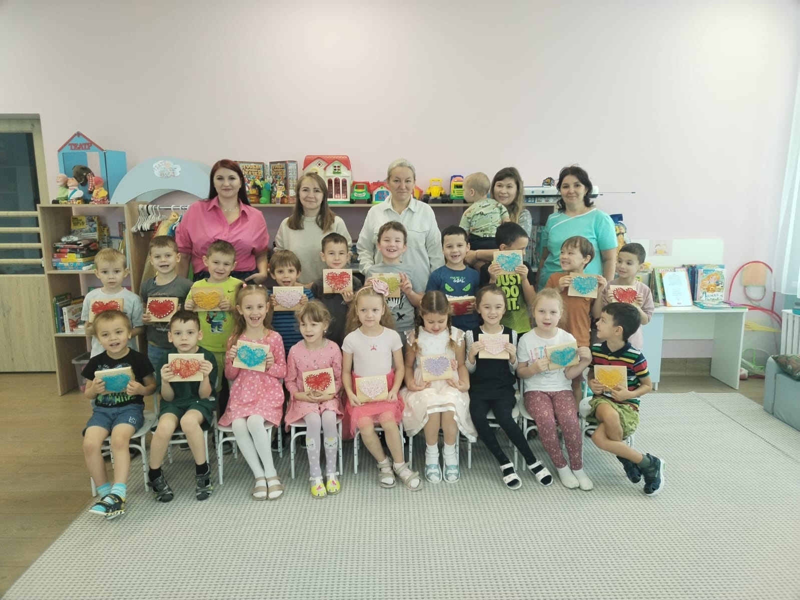 У детей получились замечательные подарки для мам в виде сердец.
