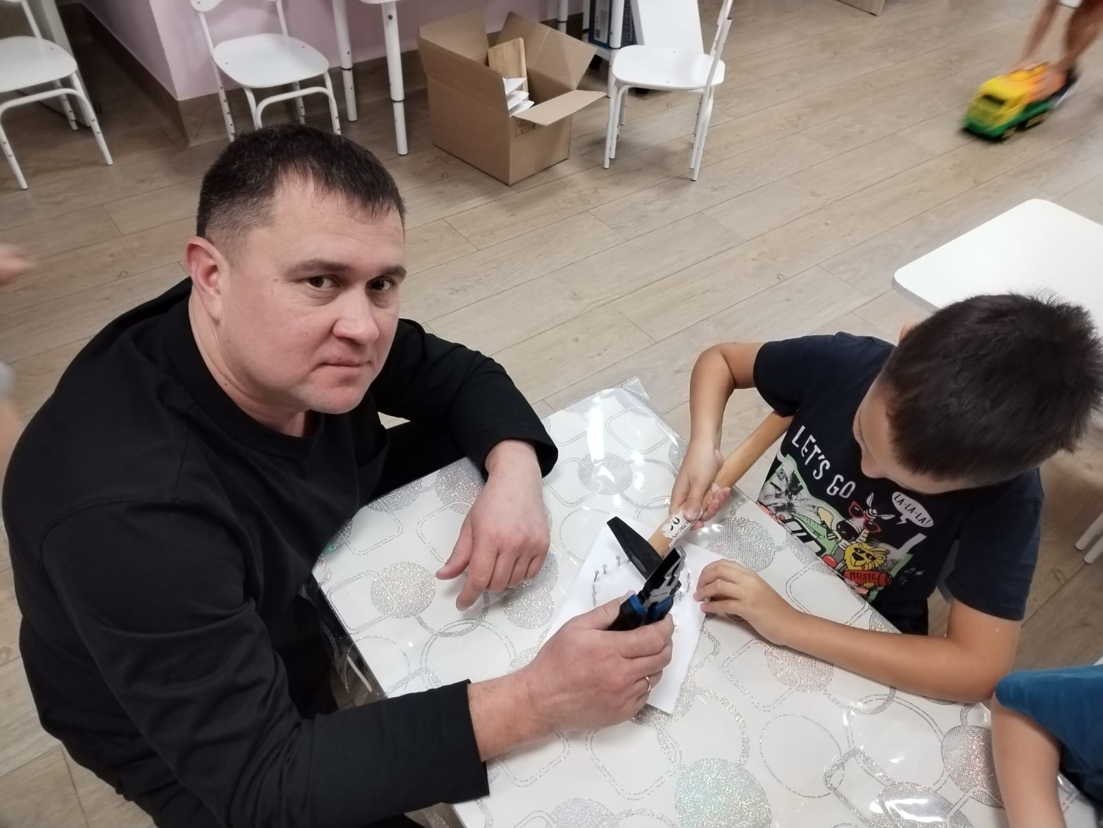 11 нче мәктәпкә әзерлек төркемендә Әниләр көненә бүләк ясау буенча мастер-класс узды. Балалар әтиләре белән бергә такта һәм кадаклардан эшләнмәләр ясадылар. Соңыннан мастер-класска әниләр килде.