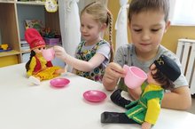 Сегодня в старшей группе N17 прошло занятие по познанию на тему «В мире игрушек". С детьми уточняли, расширяли и обобщали представления об игрушках, материалах, из которых они сделаны, частях, из которых они состоят. Формировали обобщающее понятие игрушек. Расширяли словарный запас по теме. Развивали диалогическую речь, зрительное внимание, общую моторику, логическое мышление, сообразительность, воображение.