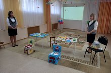 Сегодня наши воспитатели Иванова Евгения Владимировна и Шакирова Марта Хайдаровна приняли участие в районном методическом объединении по социально-коммуникативному развитию на тему "Патриотическое воспитание как средство социально-коммуникативногоразвития детей дошкольного возраста" на базе МАДОУ "Детский сад №7 комбинированного вида" с авторским дидактическим пособием "Дидактическая скатерть".