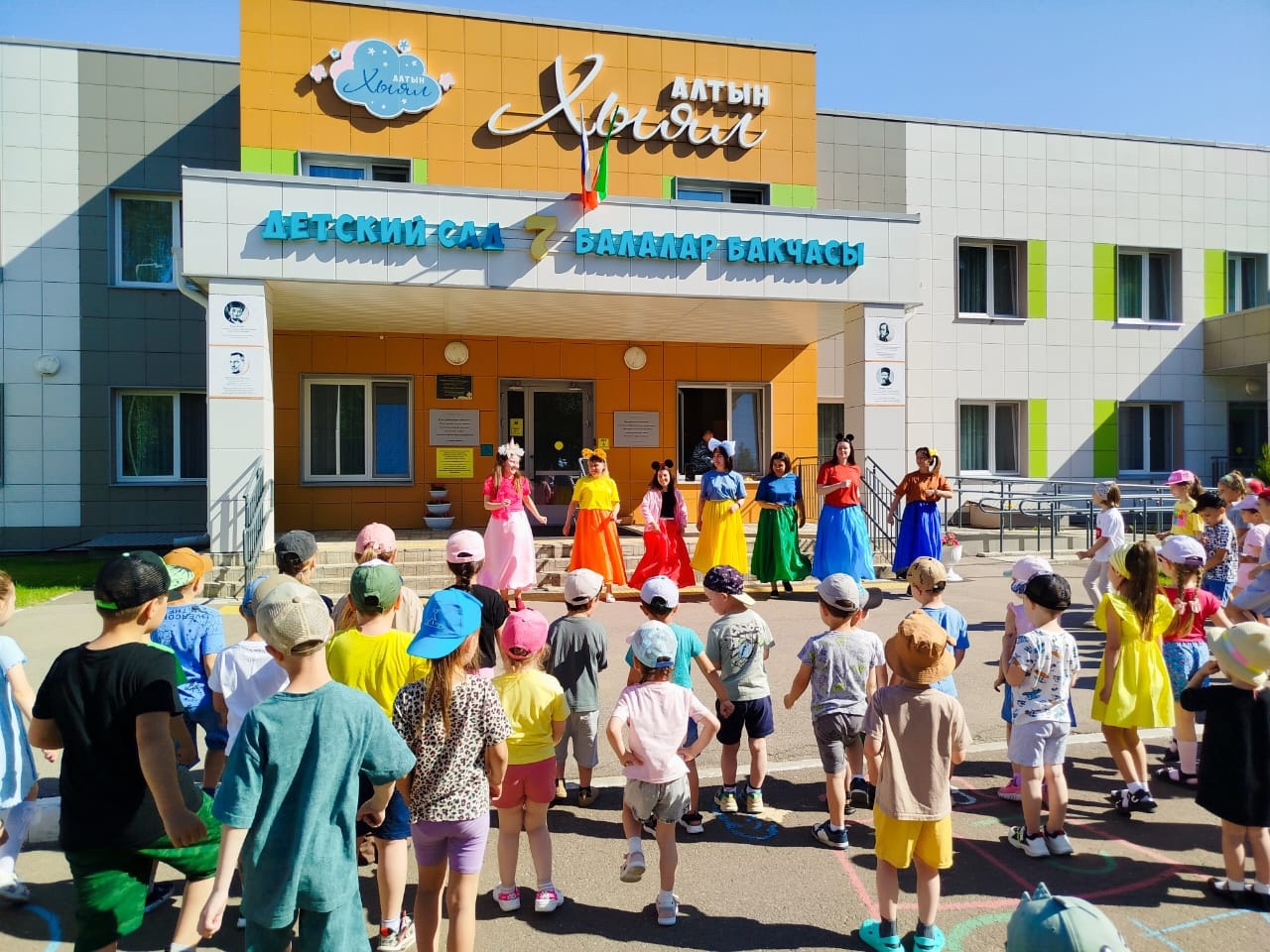 Сегодня в «Алтын хыял» яркий и традиционный праздник Сабантуй, который прошел в атмосфере веселья и национального колорита: дети участвовали в татарских народных играх, пели, танцевали и заряжались хорошим настроением. Подготовка к празднику началась за несколько дней до назначенного праздника. Дети собирали платки и красиво вышитые полотенца, приглашая всех с добрыми пожеланиями на торжественный Сабантуй.