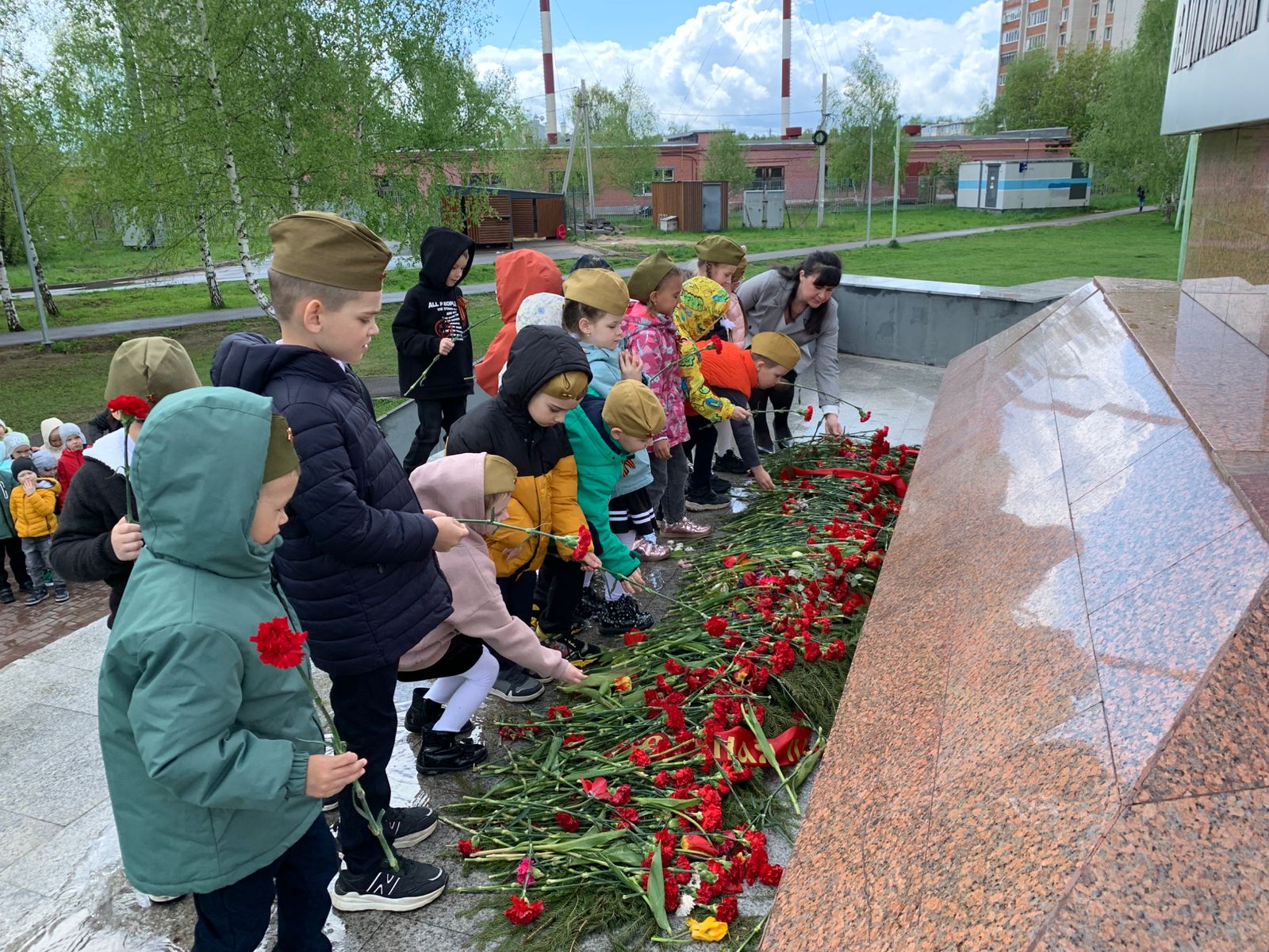 Бүген өлкән төркемнәрдә тәрбияләнүчеләр Бөек Җиңүнең 80 еллыгы уңаеннан Ватанны саклаучылар һәйкәленә чәчәкләр салдылар.