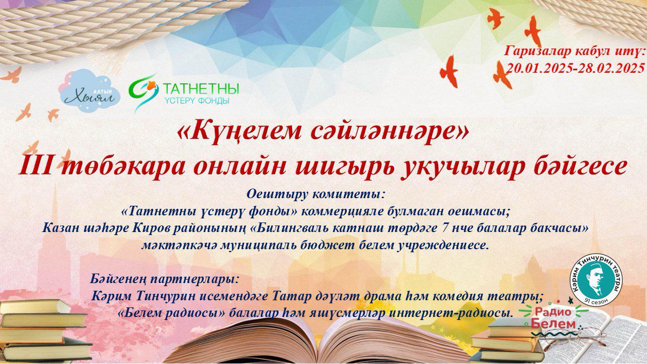 Уважаемые участники конкурса “Күңелем сәйләннәре"! Результаты по итогам конкурса доступны по ссылке ниже. Желаем каждому из Вас дальнейших творческих успехов и побед!