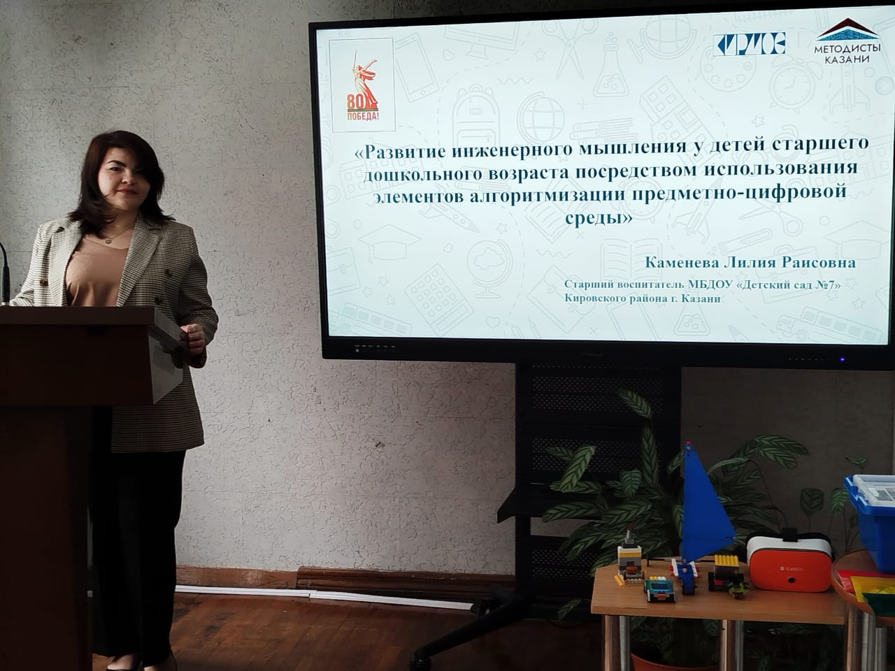 Сегодня на базе МБОУ "Гимназия 94 имени Л.Н.Мурысина" Московского района прошел семинар стажировки руководителей и методистов информационно-методических отделов муниципальных органов управления образования РТ по теме "Эффективные муниципальные механизмы адресной поддержки в условиях дефицита педагогических кадров", в котором старший воспитатель Каменева Лилия Раисовна поделилась опытом по развитию инженерного мышления у детей старшего дошкольного возраста посредством использования элементов алгоритмизации предметно-цифровой среды.