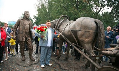 При жизни Асгату Галимзянову был поставлен памятник. Инициатором его установки стал первый президент РТ М.Ш. Шаймиев. Скульптур - Асия Миннуллина. Именно она придумала сюжет про телегу и дорогу — мужчина ведет лошадь с телегой, сажает по пути детей и внимательно следит, чтобы никто не упал и не ушибся. Он словно выводит этих детишек на дорогу, дает каждому — шанс, путевку в жизнь.