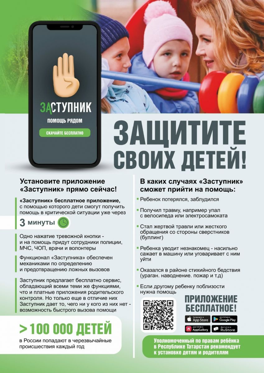 В Татарстане работает бесплатное приложение «Заступник». Оно помогает детям в экстренной ситуации не только подать сигнал бедствия, но и получить реальную помощь за 3 минуты — от близких, волонтёров и экстренных служб.