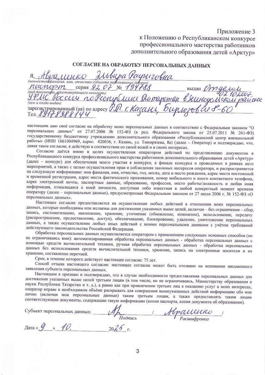 Согласие на обработку персональных данных педагога дополнительного образования Авраменко Э.Р.