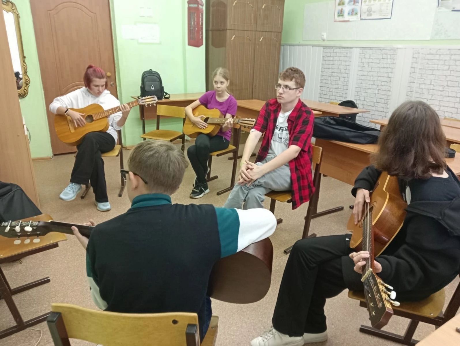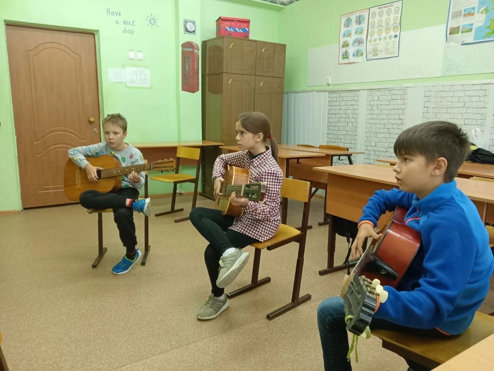 ♦ В объединении «Атмосфера» под руководством педагога - Кузнецовой Елены Анатольевны, ребята выучили несколько основных аккордов на гитаре и пробуют петь свои первые песни под собственный аккомпанемент.