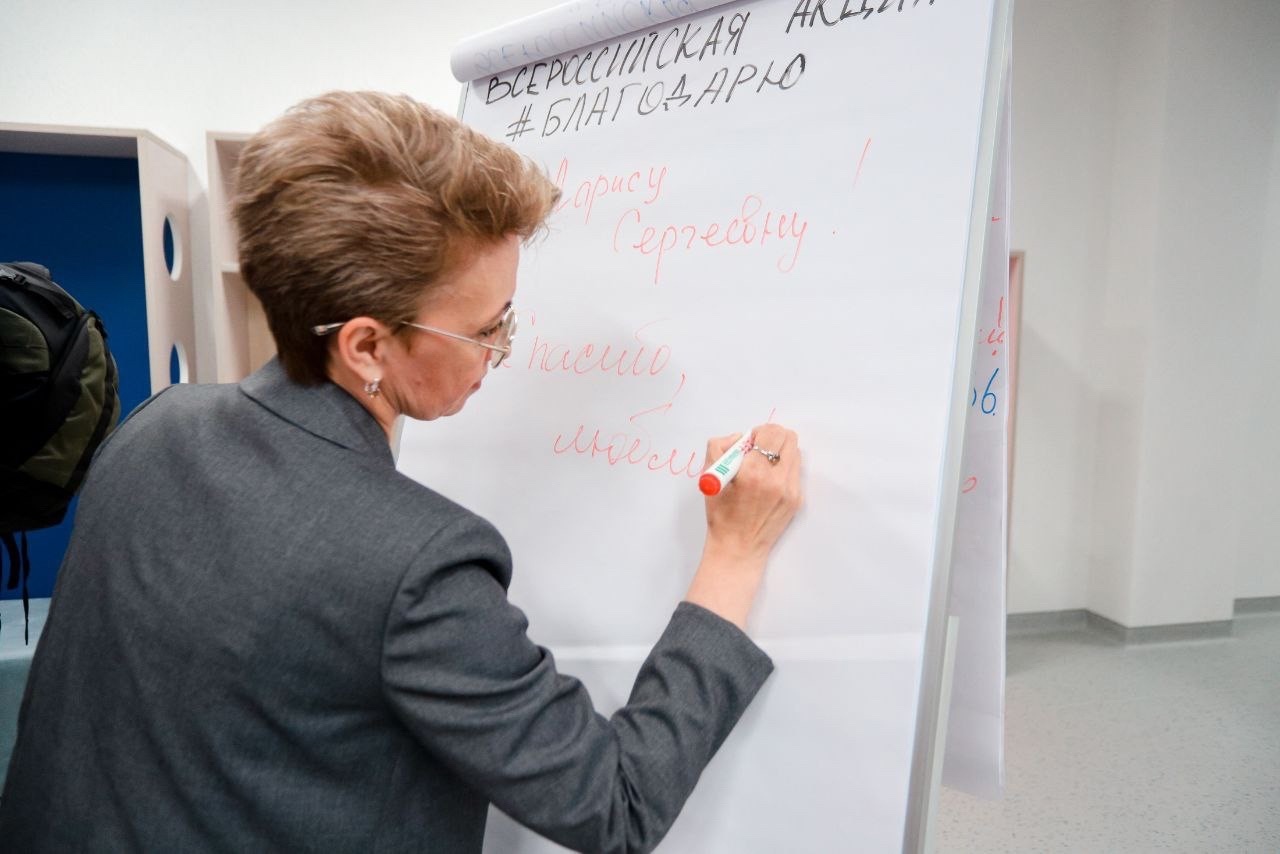 Опубликовано: 07.09.2023Сегодня на ежегодном пленарном заседании августовской конференции работников образования Кировского и Московского районов, активисты центра «Сэяхэт» #Движениепервых провели Всероссийскую акцию #БЛАГОДАРЮ , где каждый педагог мог оставить слова БЛАГОдарности своему первому педагогу, учителю, тренеру, наставнику!