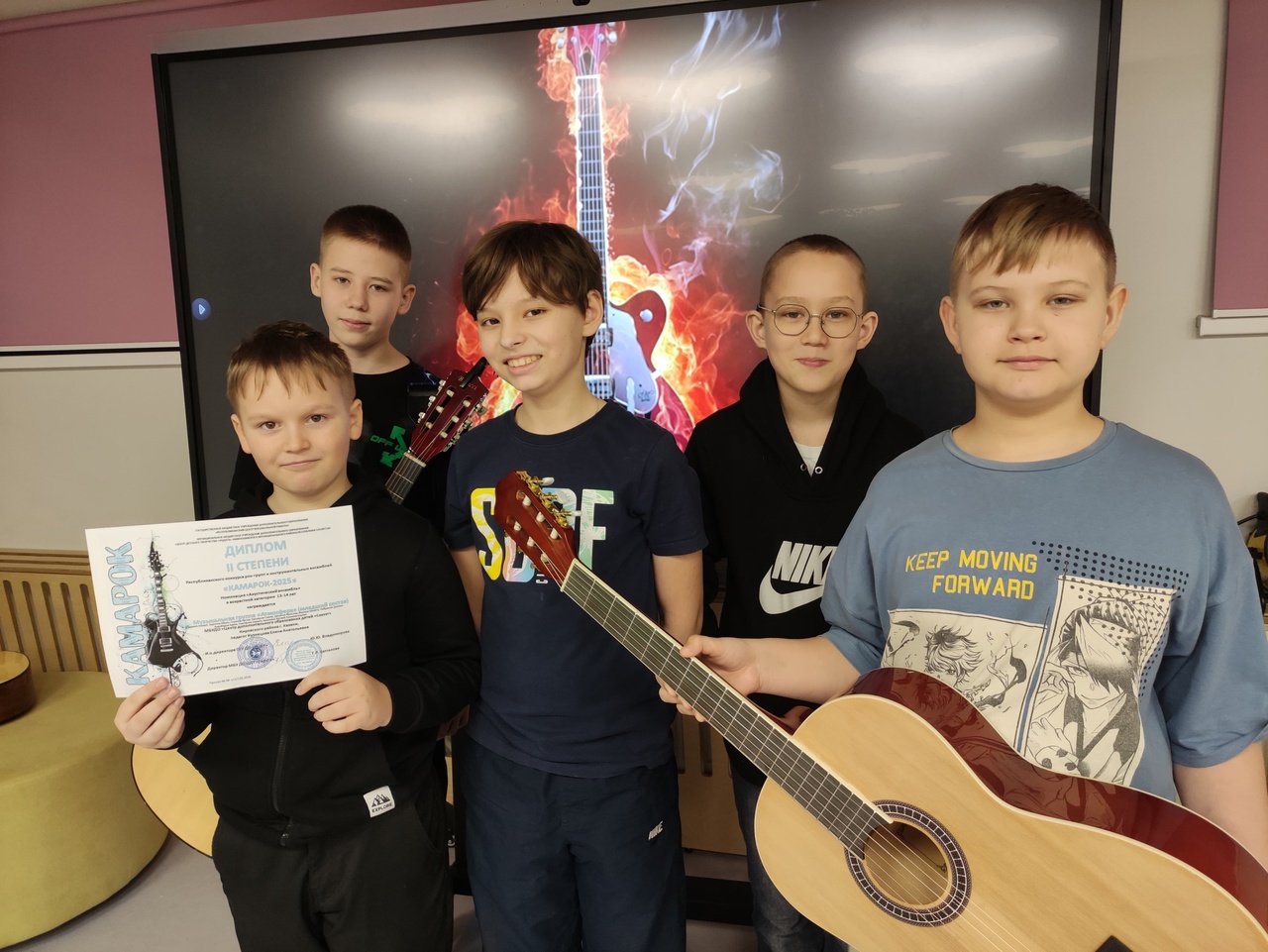 Опубликовано: 06.03.2025Поздравляем гитаристов объединения "Атмосфера" с победами в республиканском конкурсе рок-групп и инструментальных ансамблей Камарок-2025