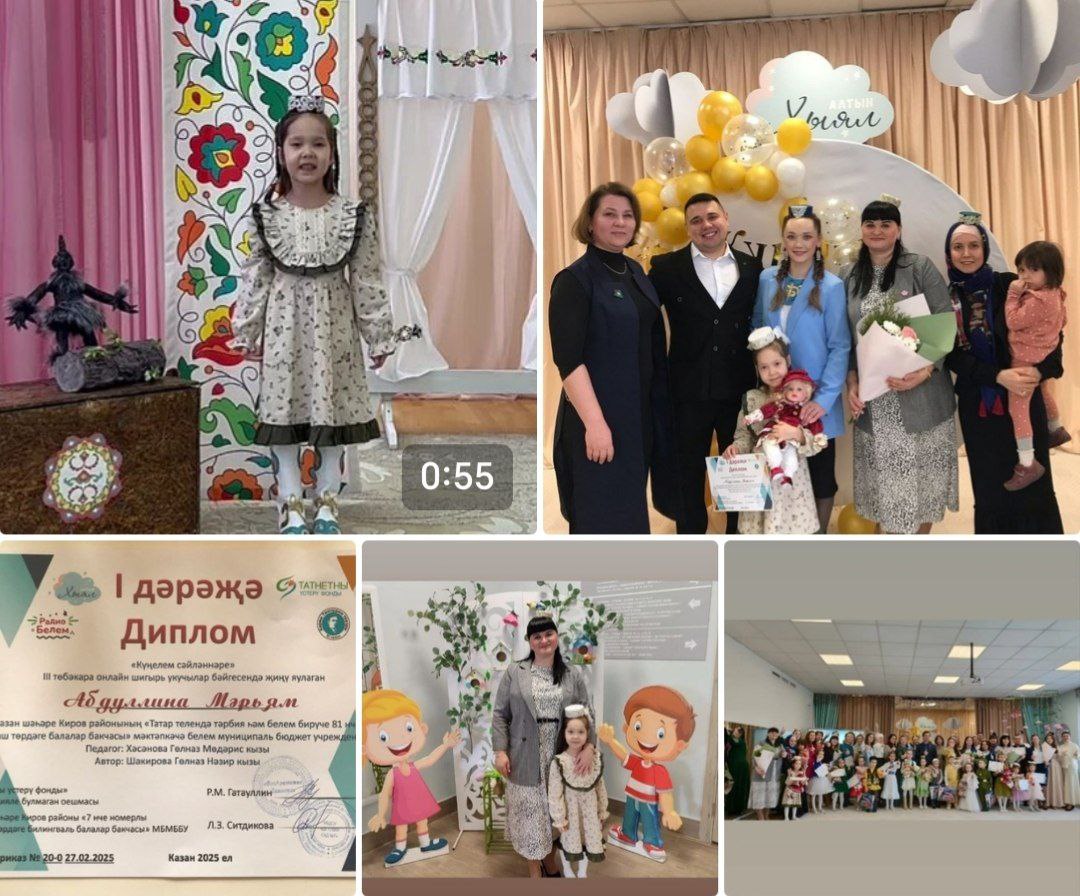 Бүген тәрбиячебез Шакирова Гөлназ Нәзир кызы һәм нәни йолдызчыгыбыз Абдуллина Мәръям "Күңелем сәйләннәре" lll төбәкара онлайн шигырь укучылар бәйгесенең җиңүчеләрен бүләкләү тантанасында катнаштылар. Әзерләүче тәрбиячесе - Хәсәнова Гөлназ Мөдәрис кызы. Талантлы тәрбиячеләребезне һәм Мәрьямне чын күңелдән җиңүләре белән котлыйбыз hәм уңышлар теләп калабыз.