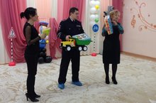 Сегодня наш детский сад посетили сотрудники ГИБДД РТ из отдела пропаганды. Агитбригада из детей подготовительной группы нашего детского сада для гостей, детей младших групп и родителей выступила с концертом по правилам дорожной безопасности. В завершении концерта Ананьичева Любовь Тимофеевна вручила детскому саду подарки для автокласса.