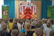 Сегодня музыкальный зал детского сада превратился в зрительный зал кукольного театра. Ребята затаив дыхание ожидали начала выступления. Маленькие зрители с большим вниманием смотрели и слушали выступление артистов. Спектакль был очень интересным, и детишки принимали в нем активное участие, проявляя свои эмоции и аплодируя артистам.