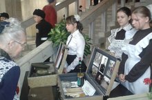 Сегодня в НКЦ прошла конференция ветеранов ВОВ. В фойе работала передвижная выставка школьных музеев. Наш музей в чемодане представила экскурсовод Бессонова Анна.